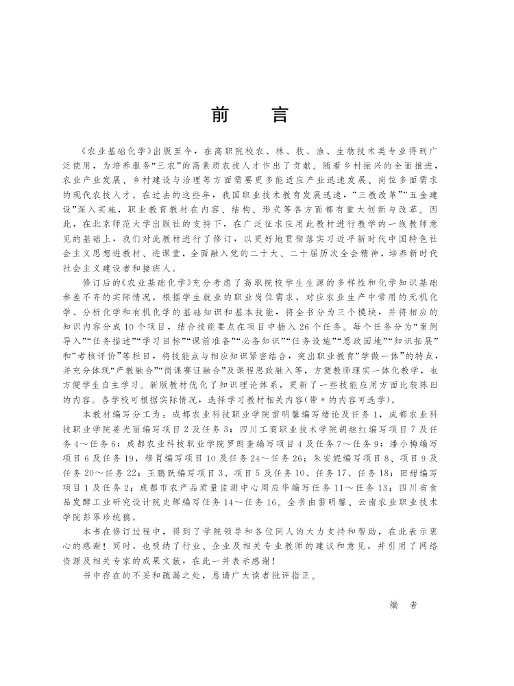 【高职理科教材】农业基础化学(第3版)9787303316717 雷明馨,姜光丽,彭翠珍/主编 高等职业教育食品类专业系列教材 北京师范大学出版社 正版书籍