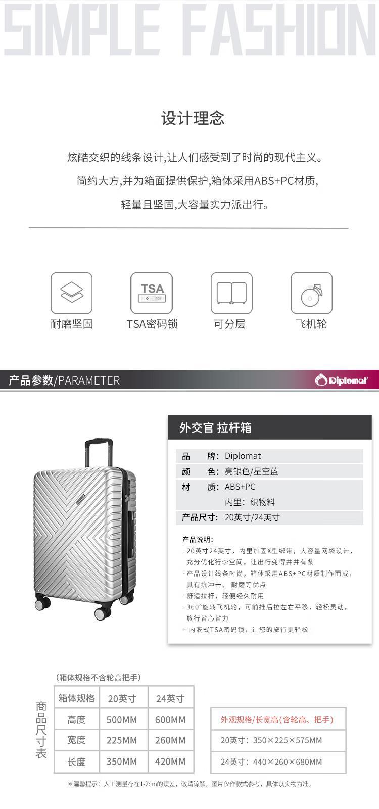 厂家直发(3-5天发货,着急勿拍)外交官Diplomat拉杆箱TC-6112/TC-6113 登机行李箱