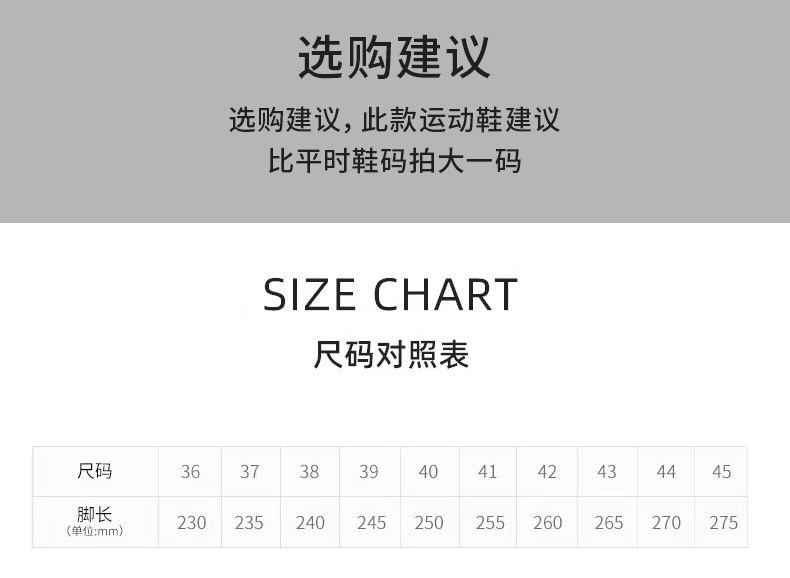 关于退换货:产品及外包装完好,鞋底干净,不影响二次销售的情况下,支持7天无理由退换货;
