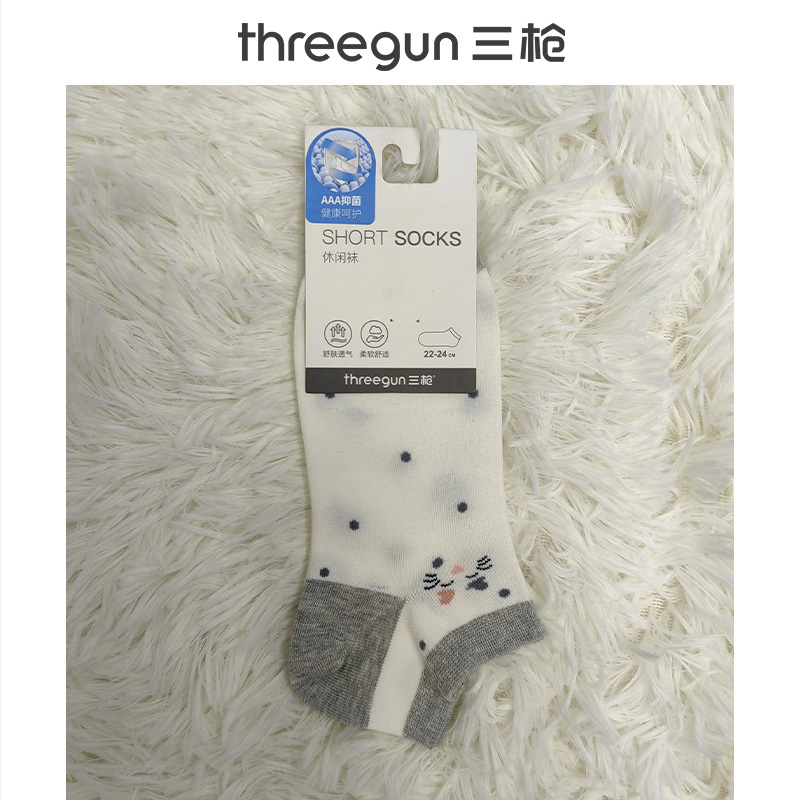 Threegun三枪 可爱镶拼女船袜(1双装)-91256Z031