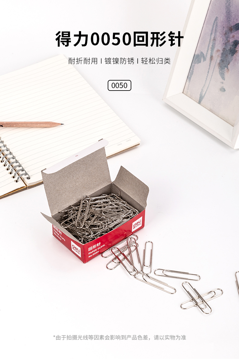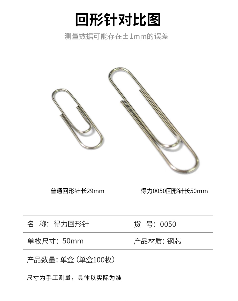 得力大号回形针8号曲别针金属100枚/盒归类标记夹纸50mm万字夹镀镍回型针