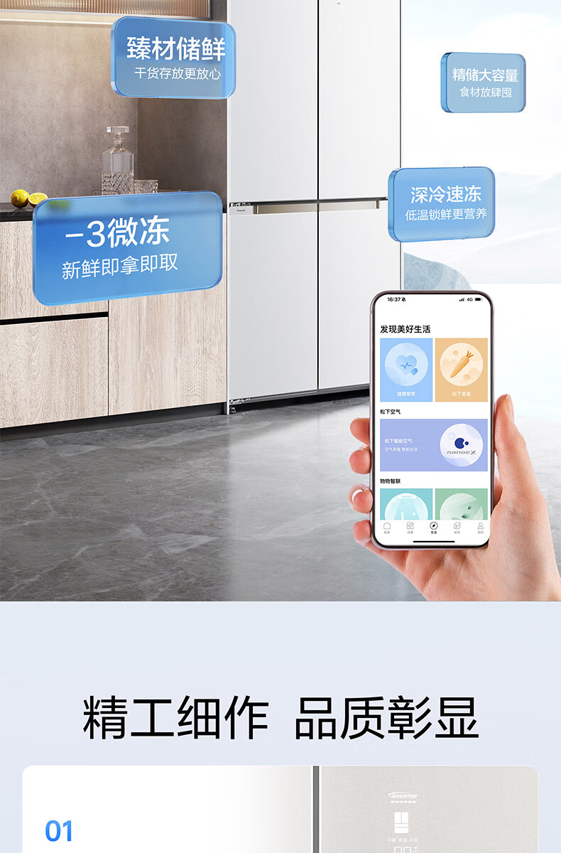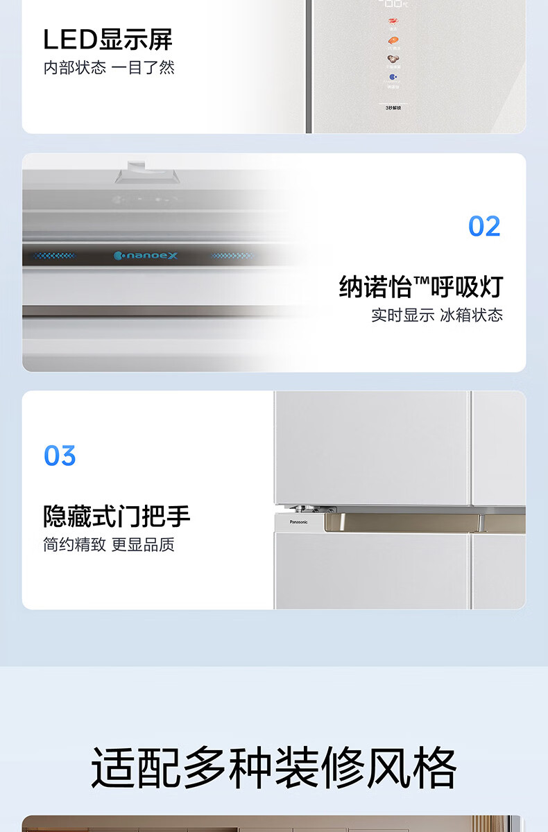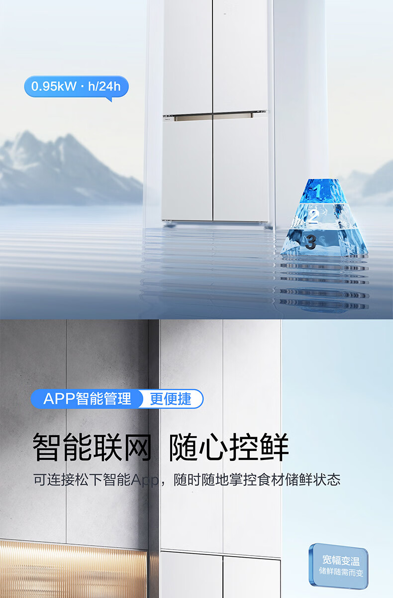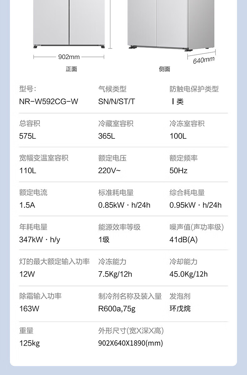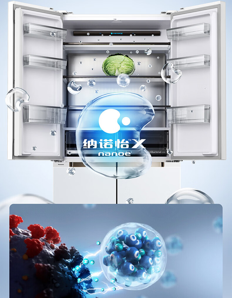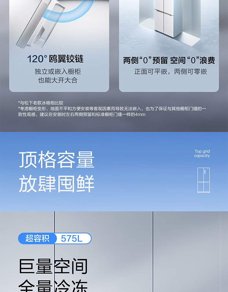【国补15%】松下【大海豹PLUS】575升NR-W592CG-S玻璃十字门零嵌大容量冰箱 -18-4℃宽幅变温 微冻保鲜/干燥臻藏
