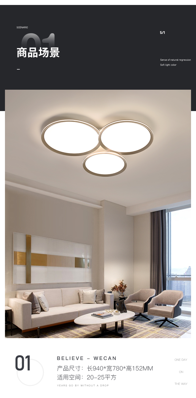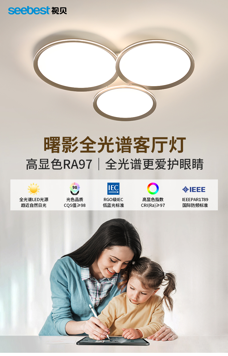 曙影-3圆-全光谱客厅灯(智能离线语音控制)(停产无库存)
