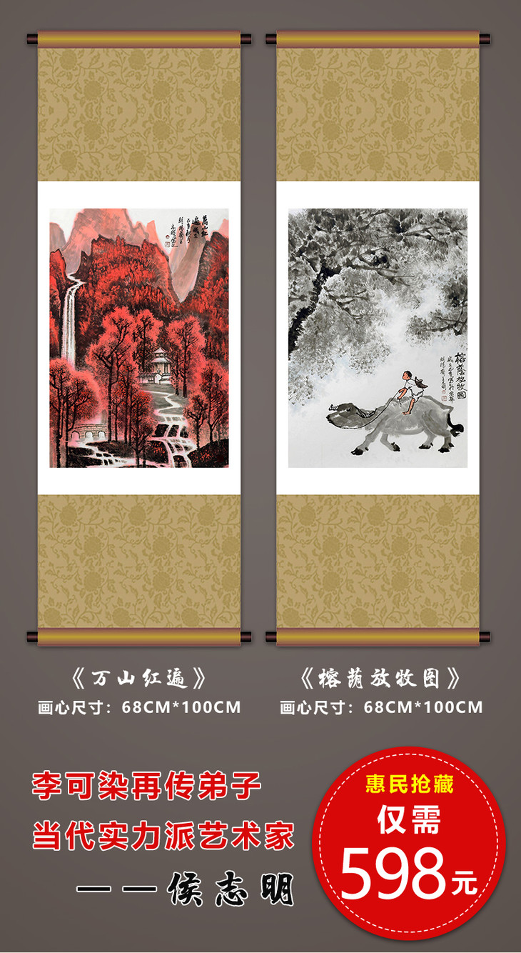 侯志明《可染双绝图》68*100cm*2 山水竖幅作品 办公室/客厅/书房挂画