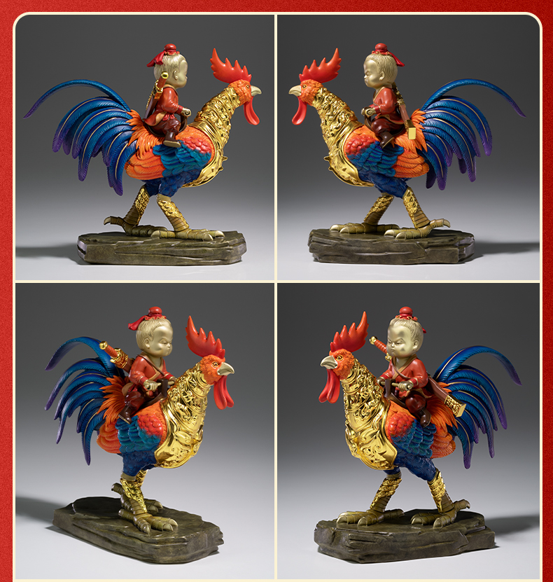 铜师傅 铜摆件《闻鸡起舞》桌面客厅电视柜家居装饰工艺品摆件