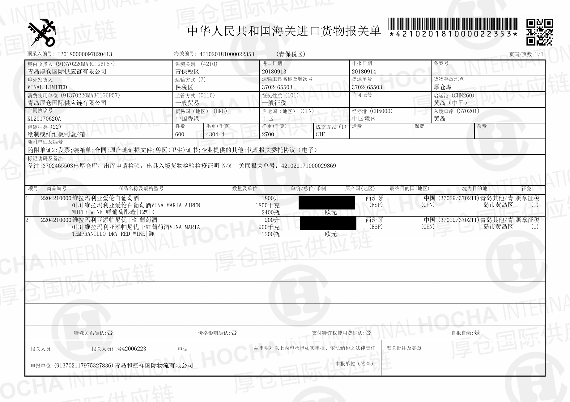 容量:750ml*2瓶