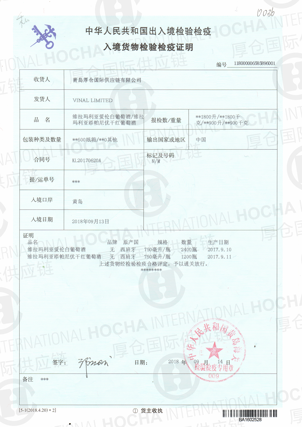 酒类:葡萄酒