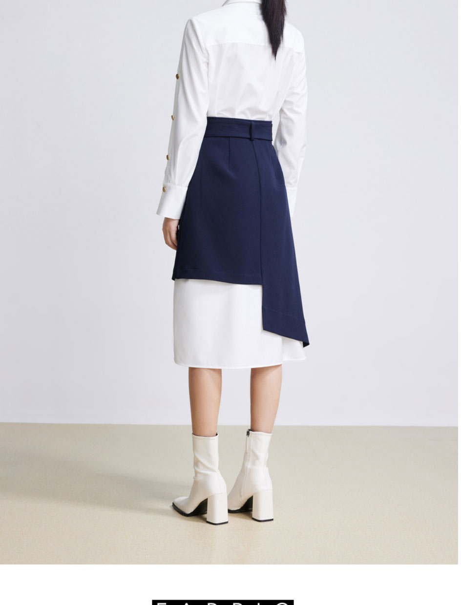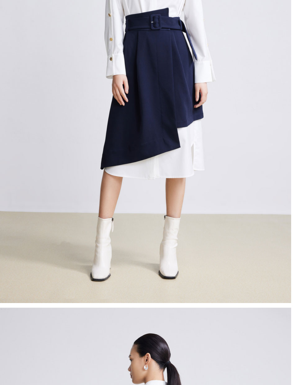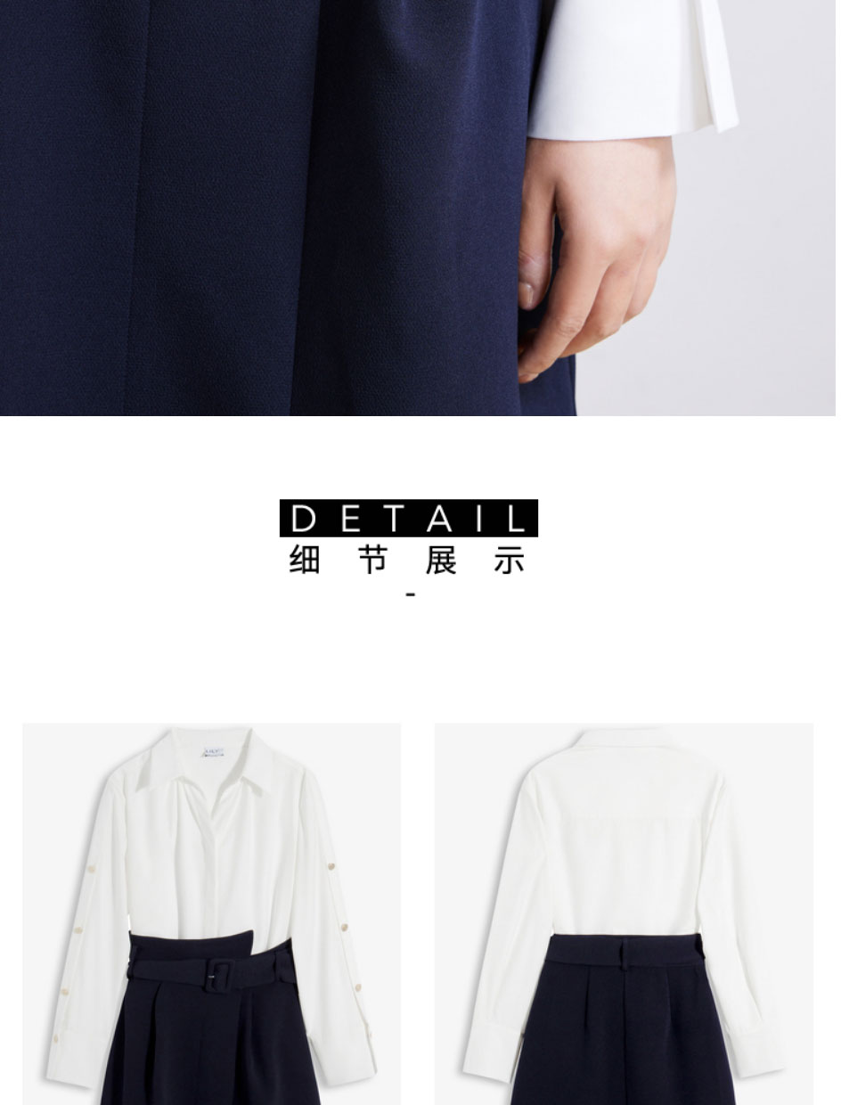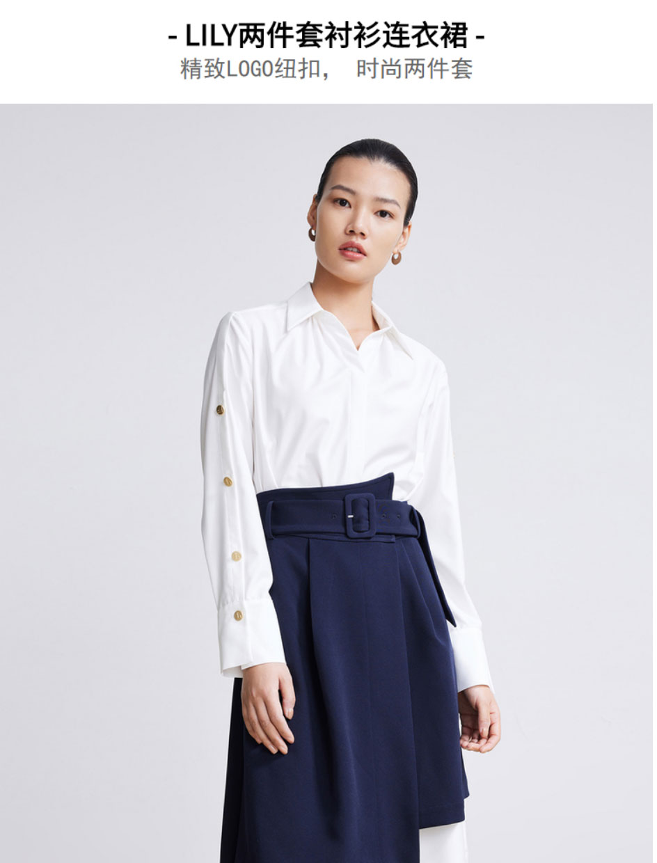 LILY2022春新款女装时尚气质两件套高腰衬衫连衣裙122120C7254