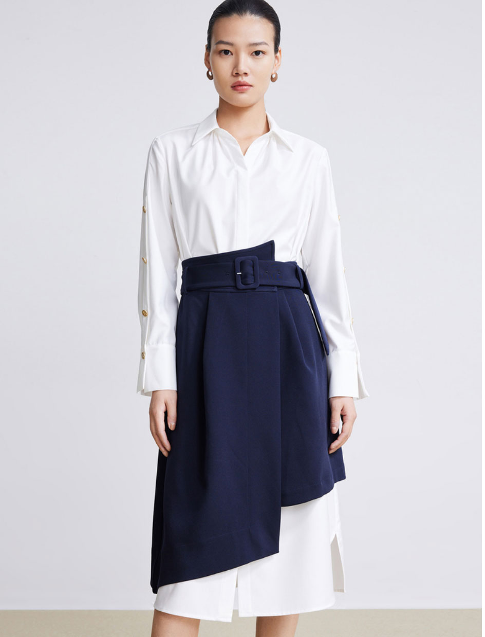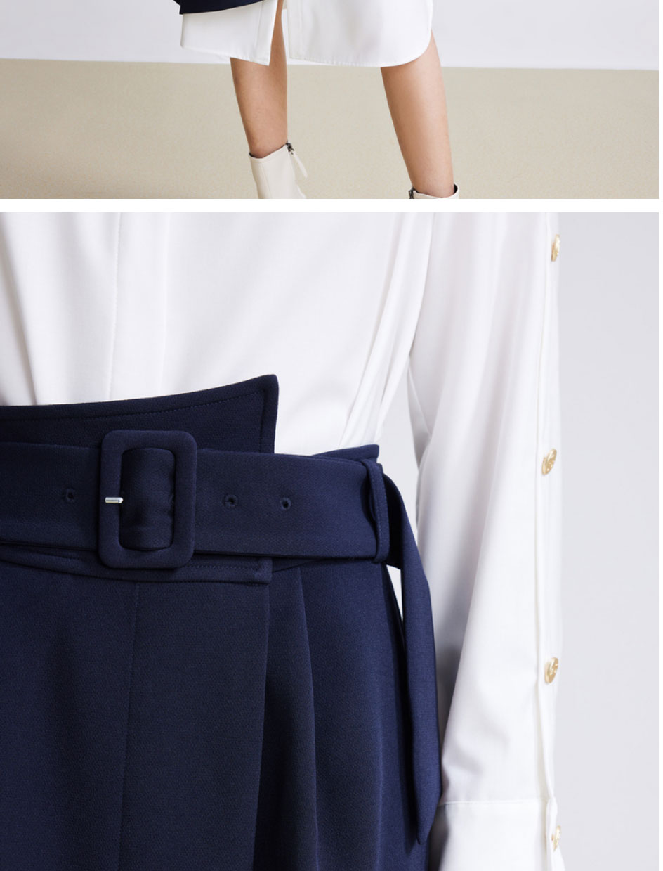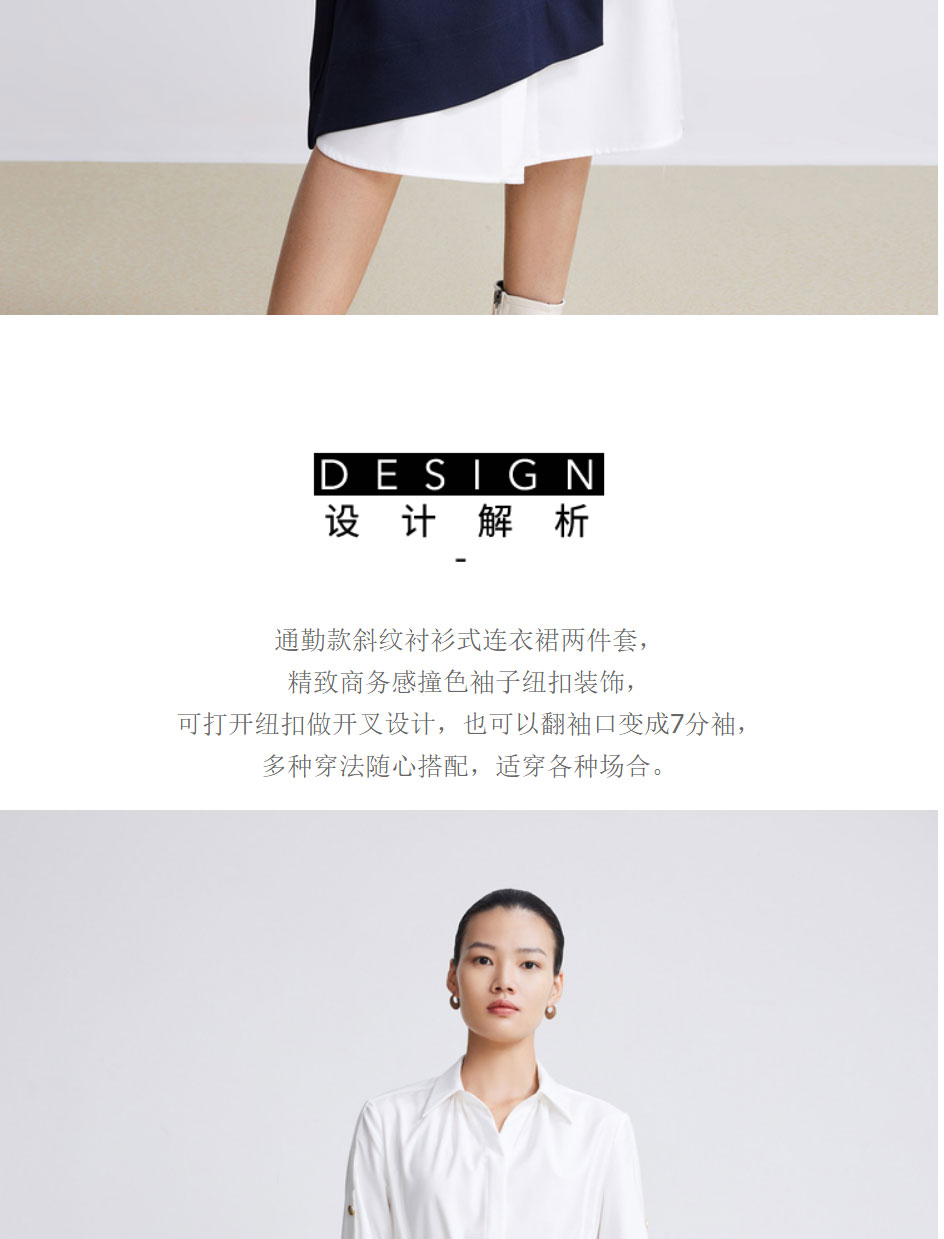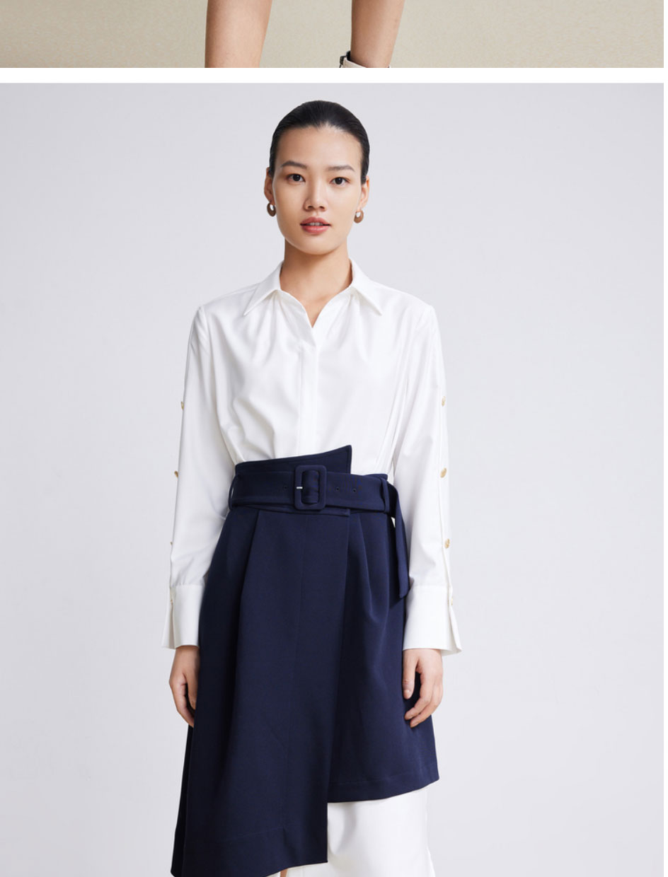 LILY2022春新款女装时尚气质两件套高腰衬衫连衣裙122120C7254