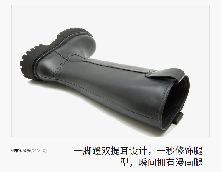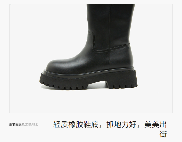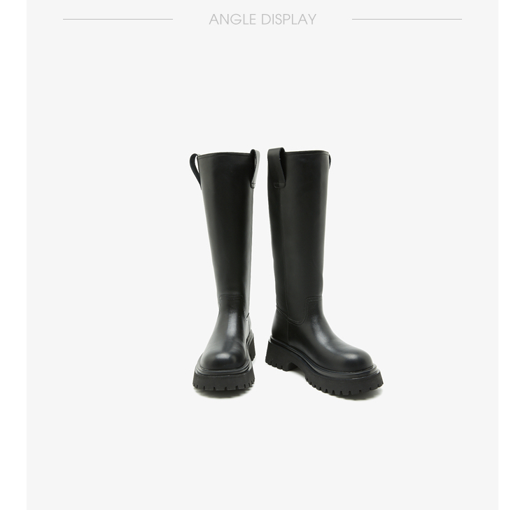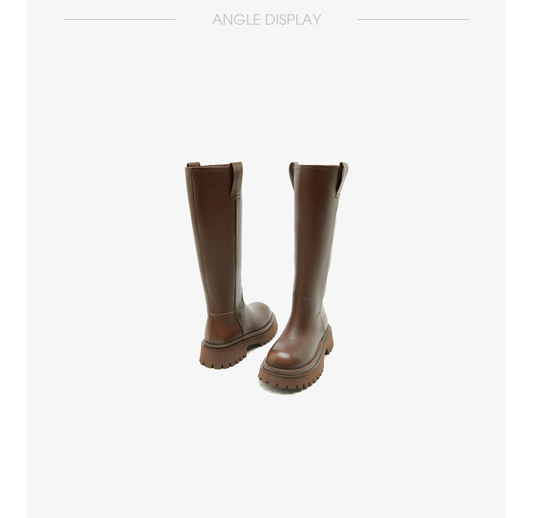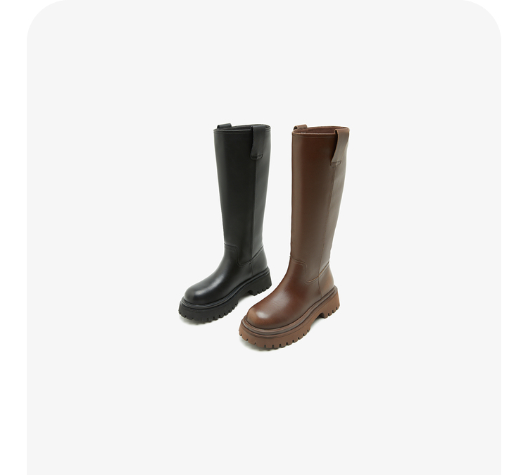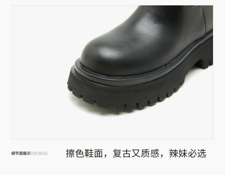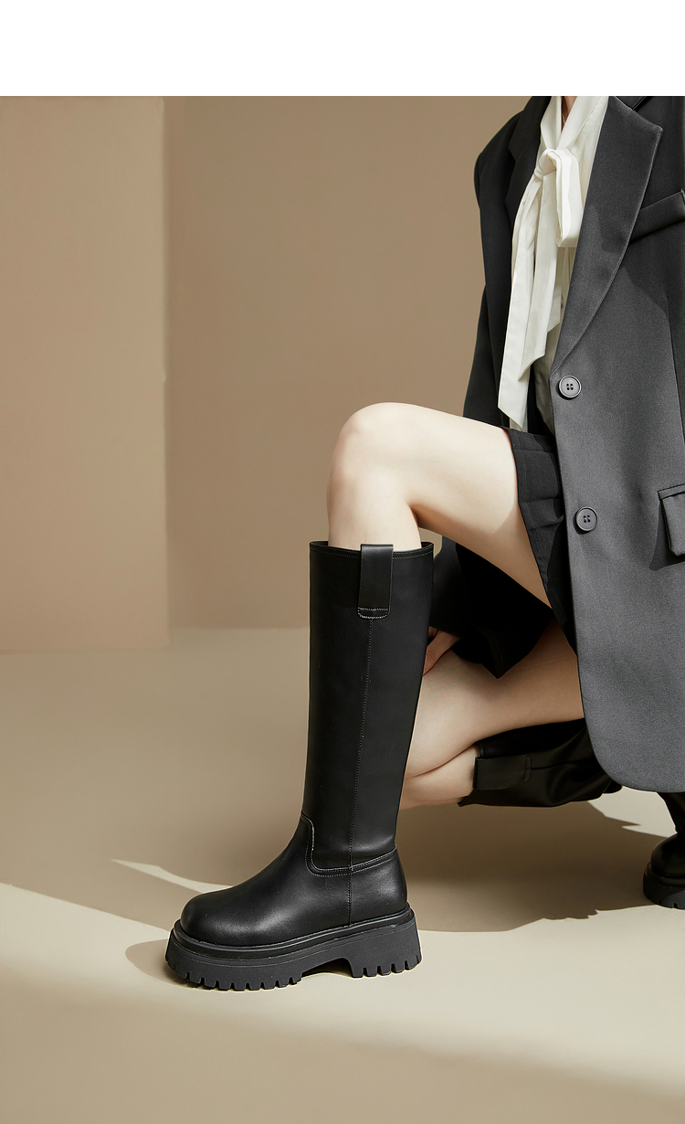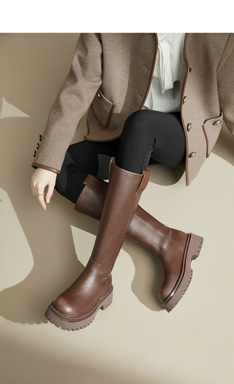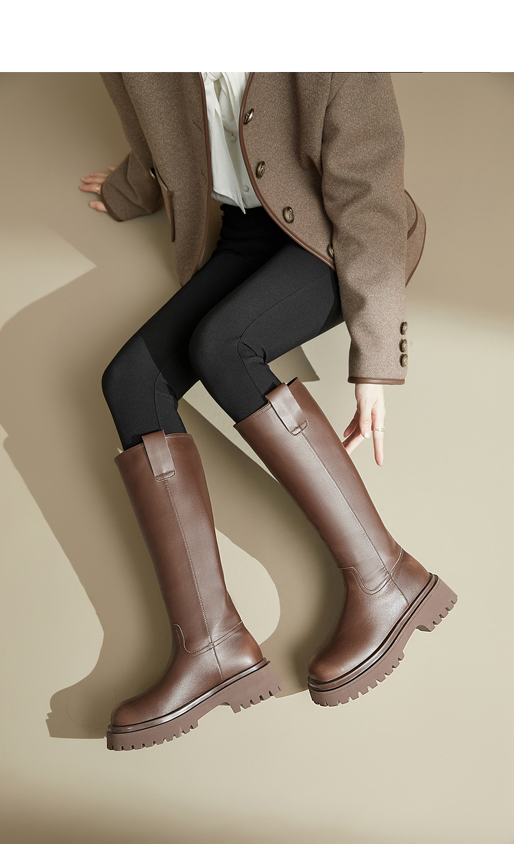 西遇厚底骑士靴女新款秋冬擦色复古一脚蹬长筒靴小个子长靴子20034337