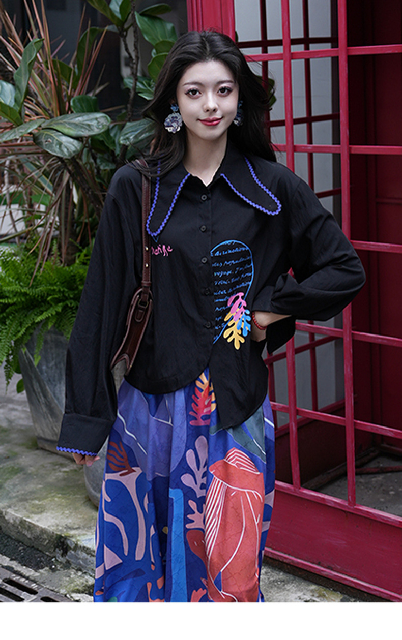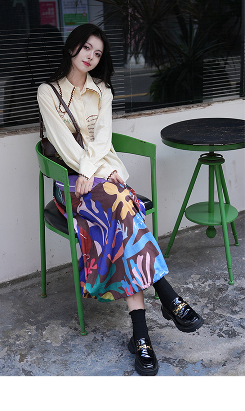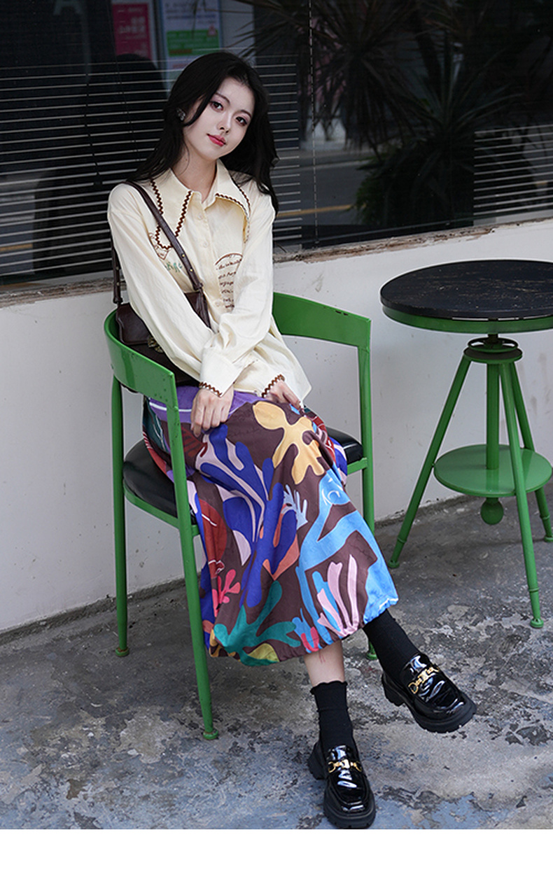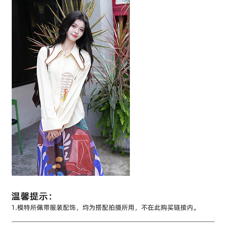 两三事梵高文艺琦色幻想2025秋季新款复古印花衬衫半身裙两件套女