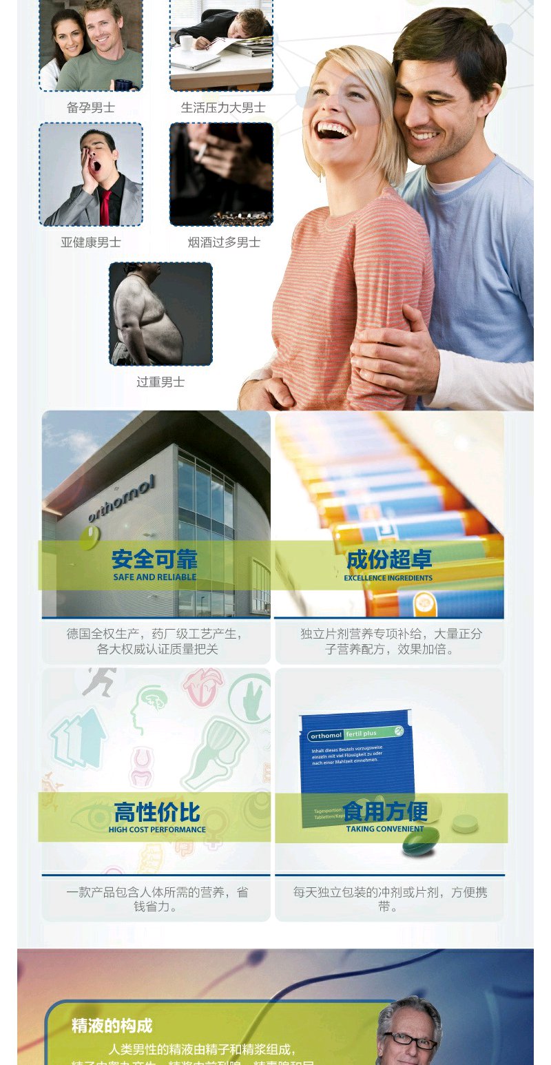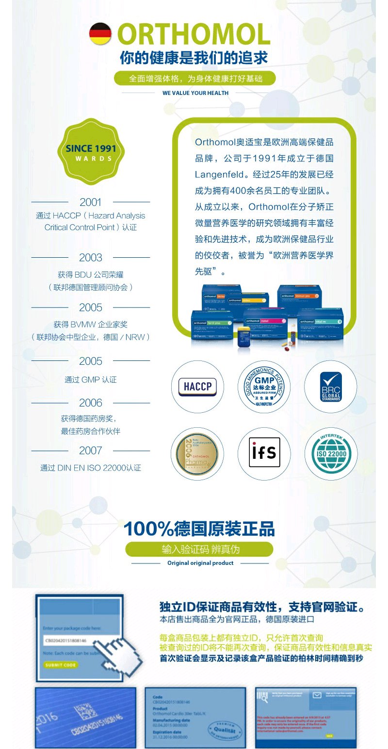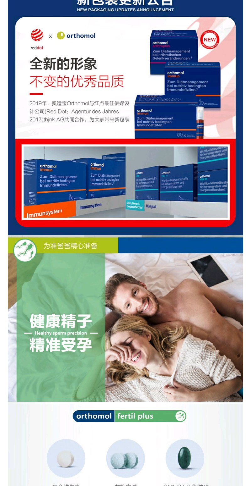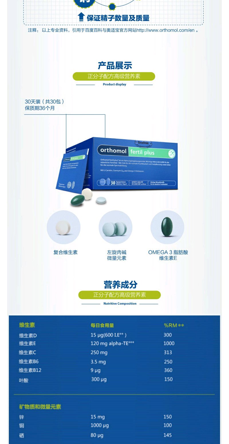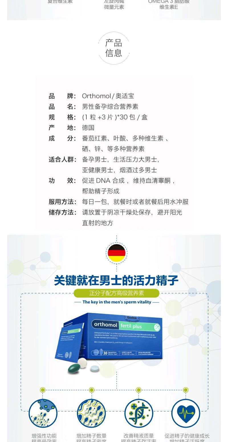 【Orthomol奥适宝】Fertilplus奥适宝男性备孕综合营养素30包/盒