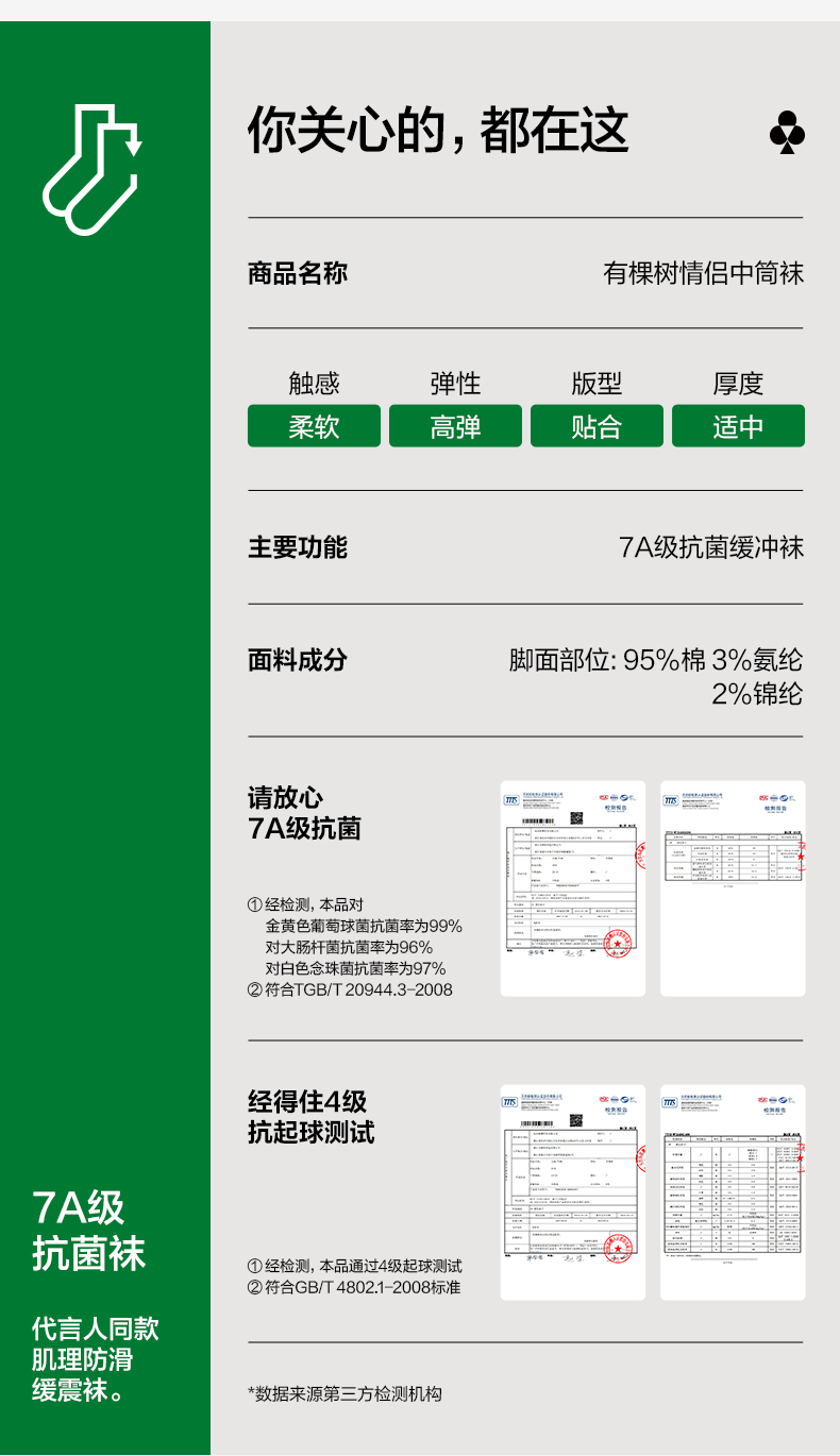【代言人成毅同款】有棵树纯棉情侣中筒袜情侣袜7A抗菌防臭5双装-QZ1011