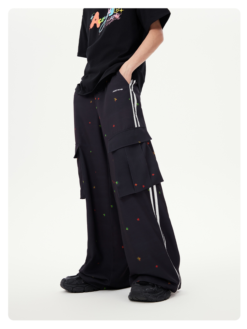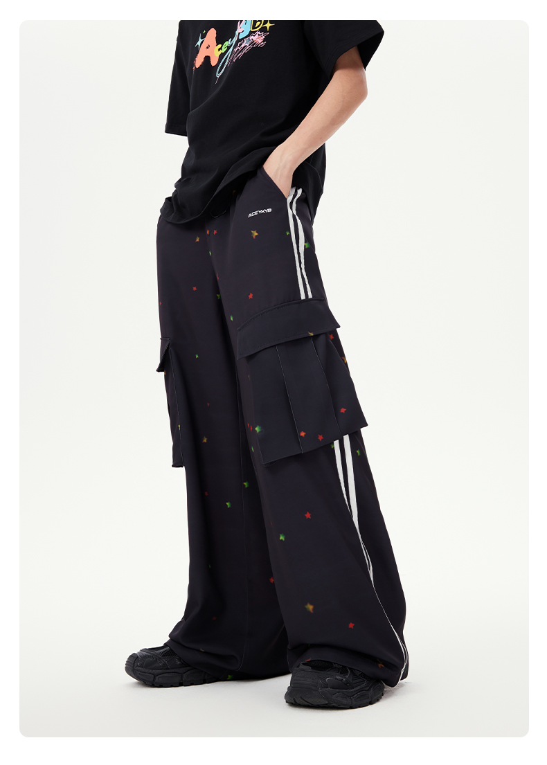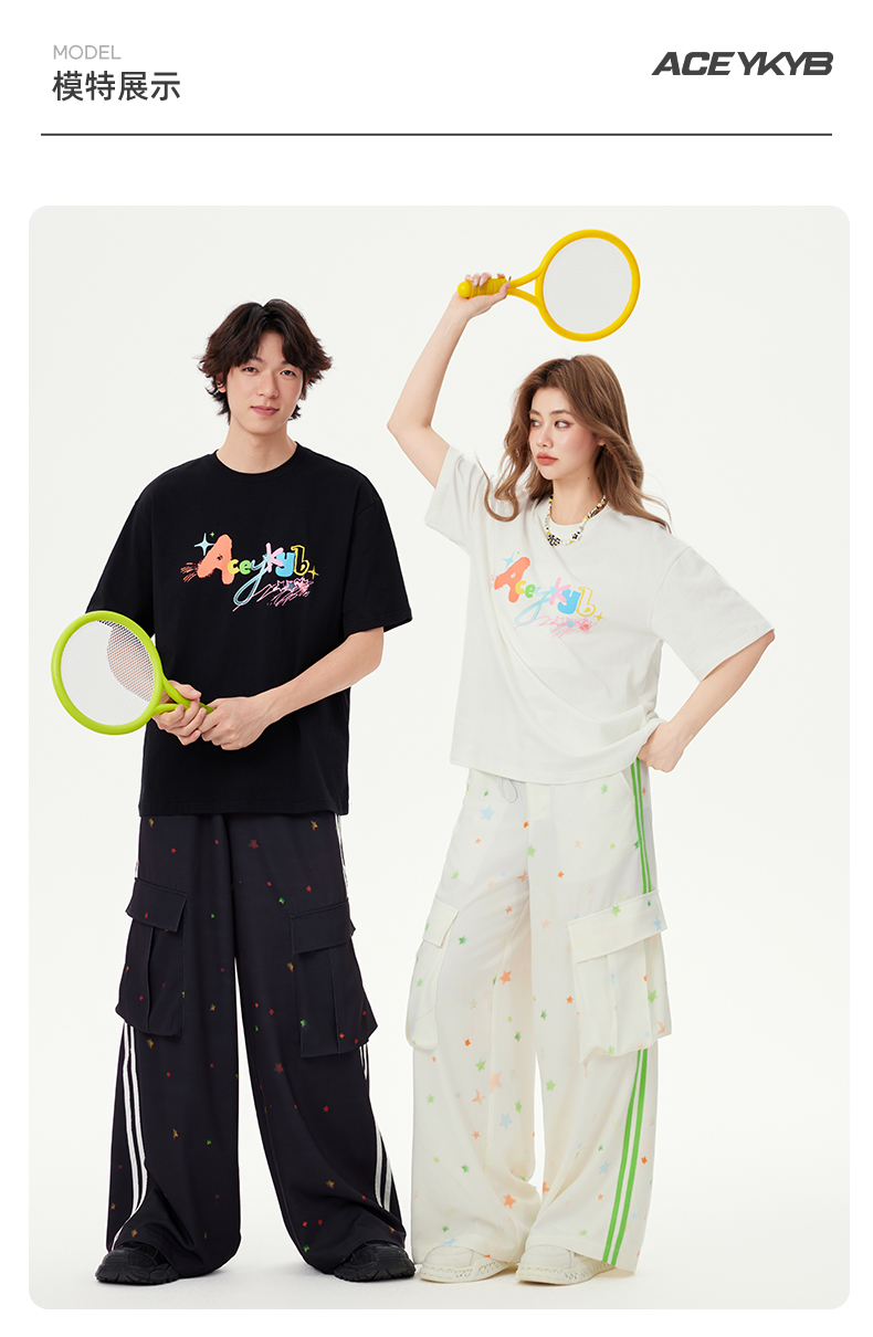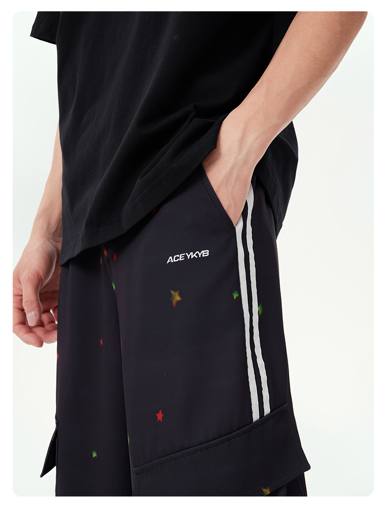 YKYB黄子韬休闲裤工装裤凉感垂感柔软肤吸湿速干个性活力清爽星星印花裤子Y52NXK045
