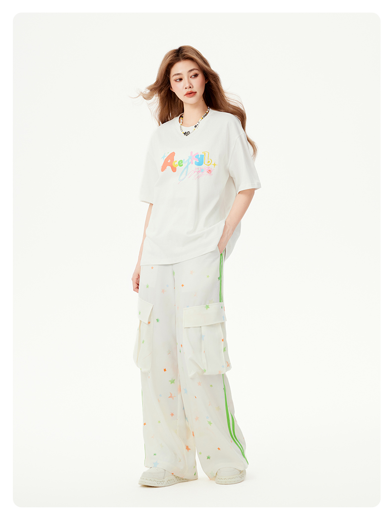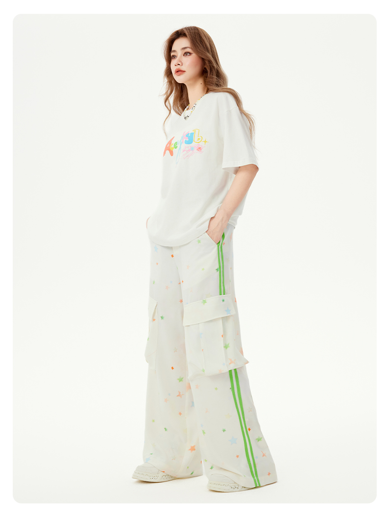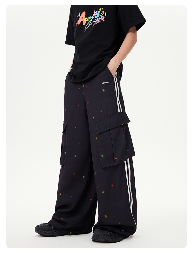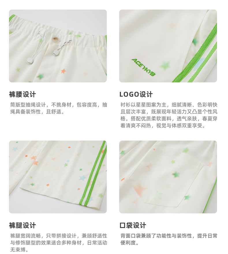 YKYB黄子韬休闲裤工装裤凉感垂感柔软肤吸湿速干个性活力清爽星星印花裤子Y52NXK045