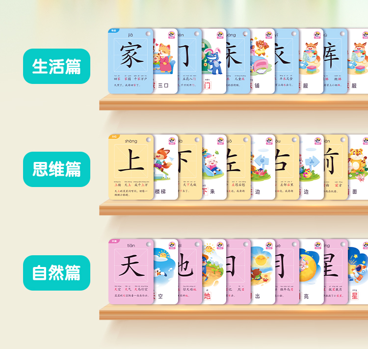 【点读版】单盒装 识字卡趣味识字2岁+ 趣味识字卡·思维篇/自然篇/生活篇(升级版)趣味拼音卡