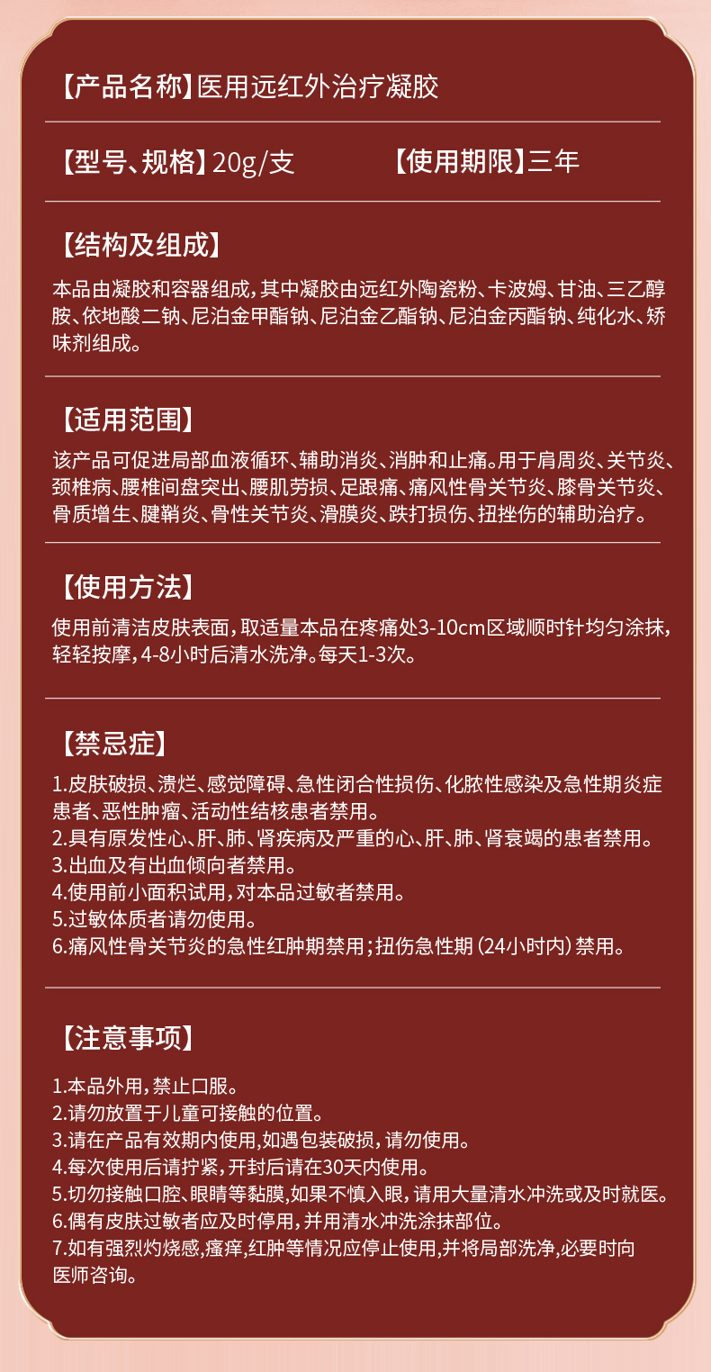 天宝药业医用远红外治疗凝胶辅助治疗肩周关节炎颈椎病腰椎间疼痛