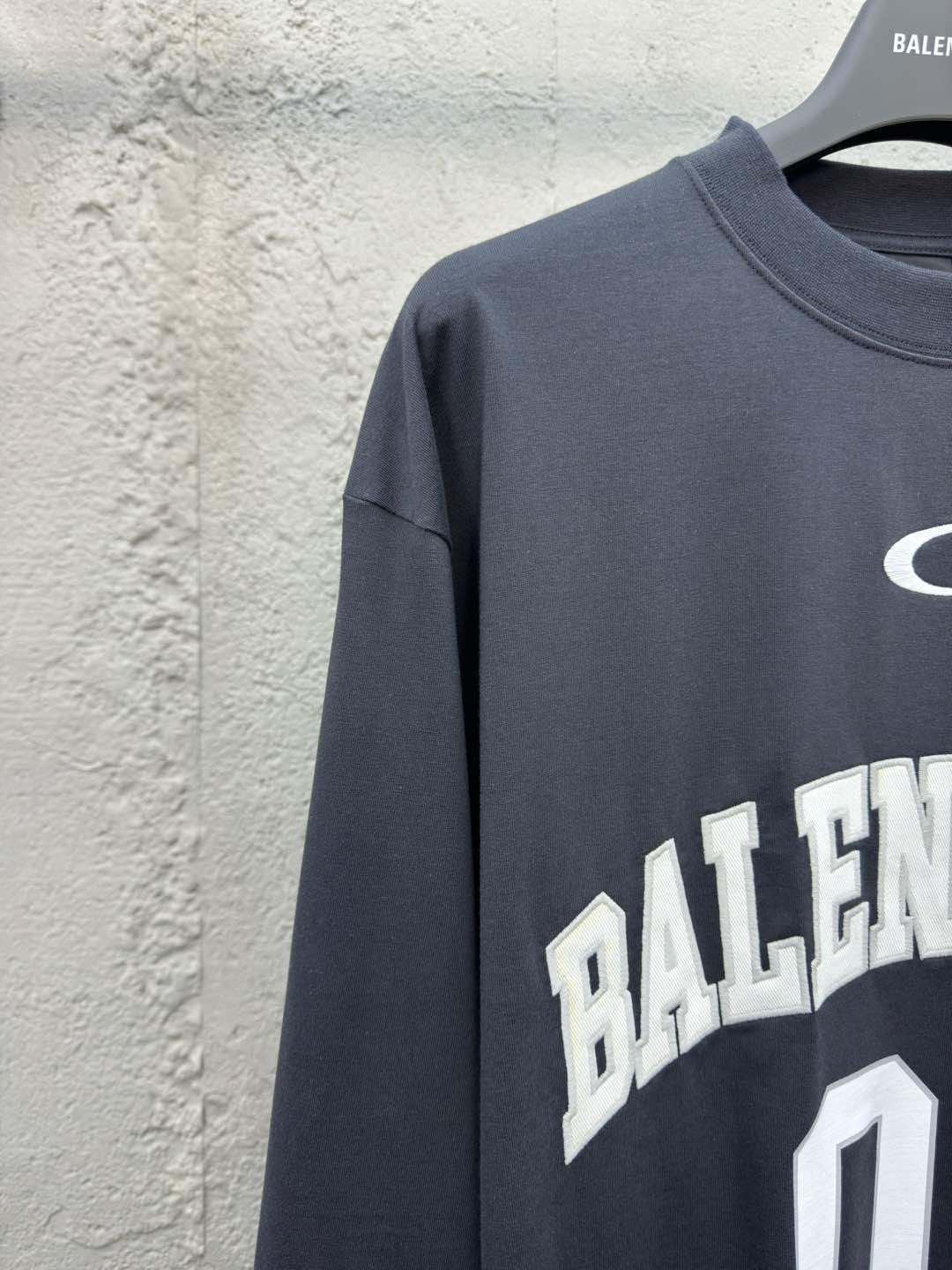 工艺说明:采用复古平纹针织面料,缩褶袖口,正面和背面饰以basketball艺术作品刺绣,下摆巴黎世家章仔。整体走线平直细腻 面料舒适柔软 颜色一致无色差 能与同款搭配营造时尚造型,驾驭各种场合,定制辅料,三标齐全,男女同款!