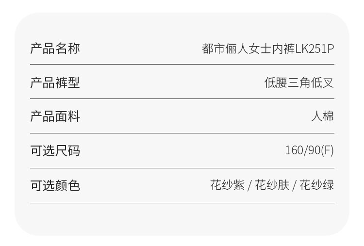 都市丽人基础系列木代尔色织人棉三角低叉女士内裤LK251P