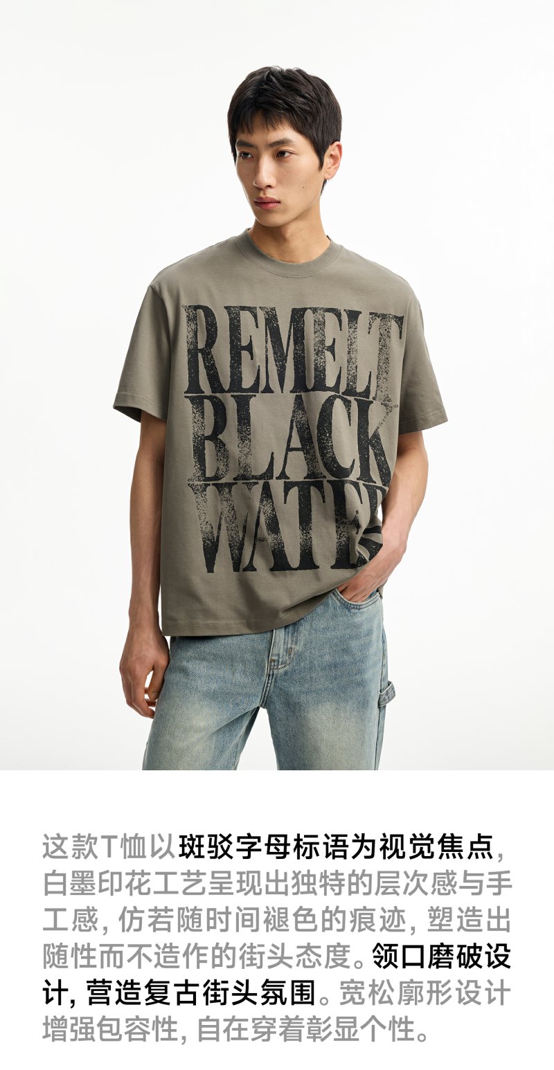 【商场同款】CHINISM赤尘 磨破字母印花t恤男夏季宽松复古短袖