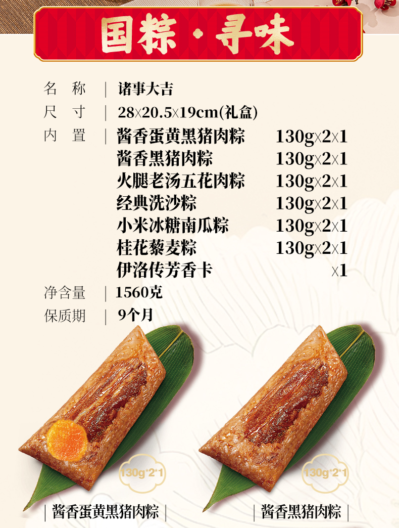 诸老大 诸事大吉枕头粽礼盒(12粽+香香卡片) - 1560g【端午】SKT