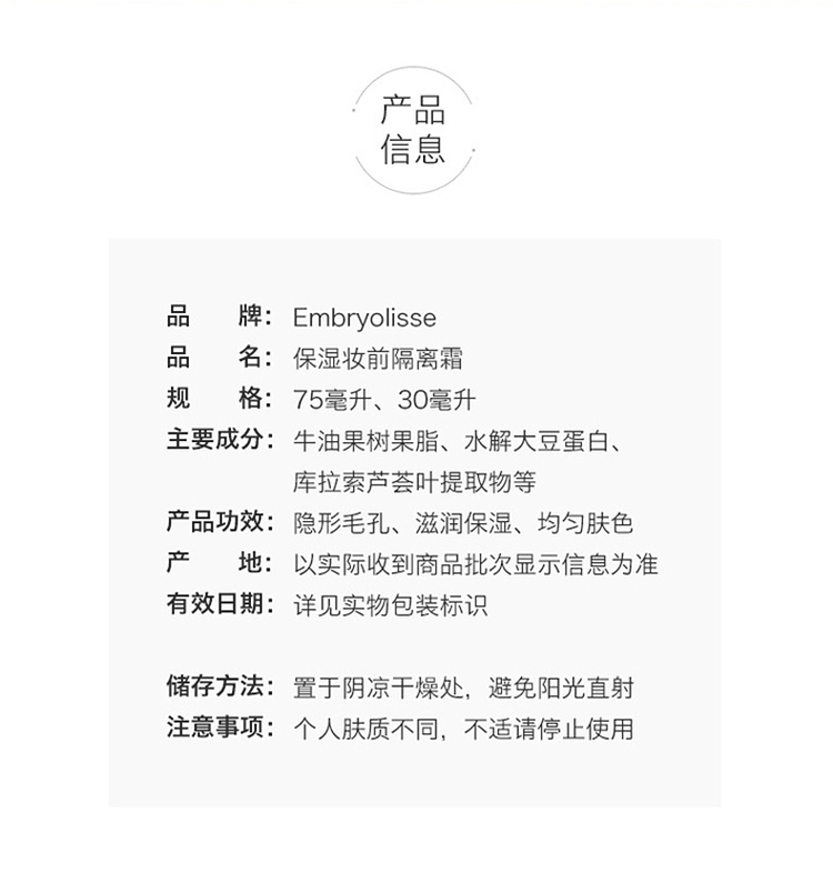 【现货现发】法国Embryolisse大宝隔离保湿妆前乳 30ml(有效期至:10/2025)