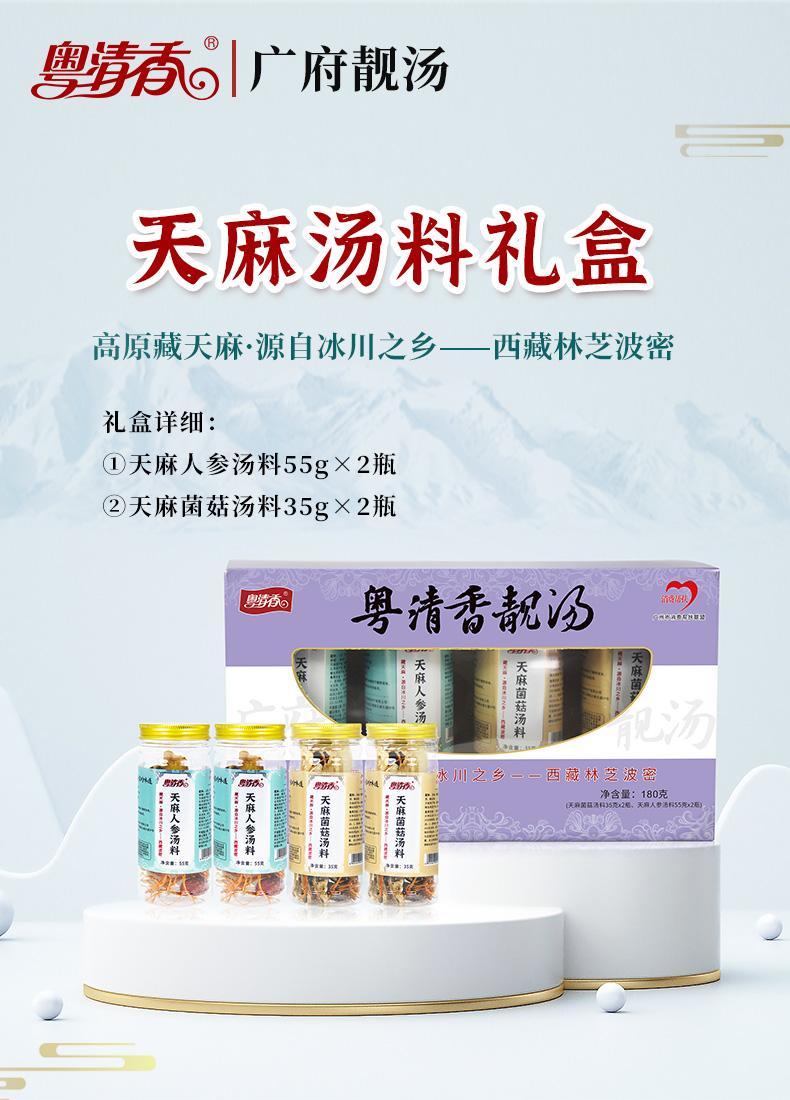 【从化帮扶】天麻汤料瓶装礼盒(180克) | 天麻菌菇瓶装汤料35克×2瓶+天麻人参瓶装汤料55克×2瓶