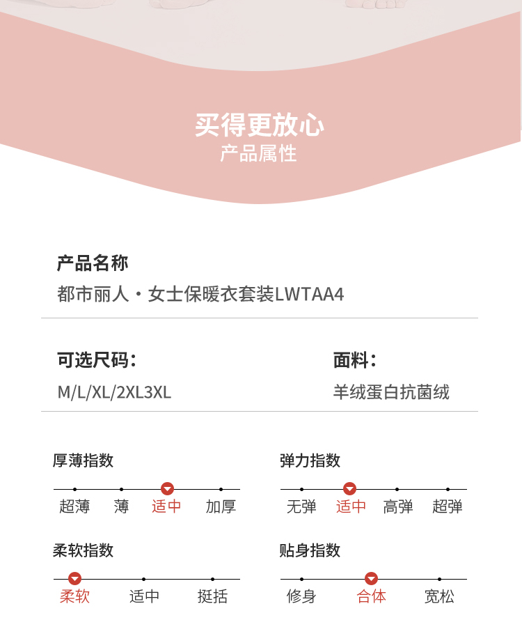都市丽人保暖衣舒暖套装羊绒蛋白抗菌绒中厚女士保暖衣套装LWTAA4