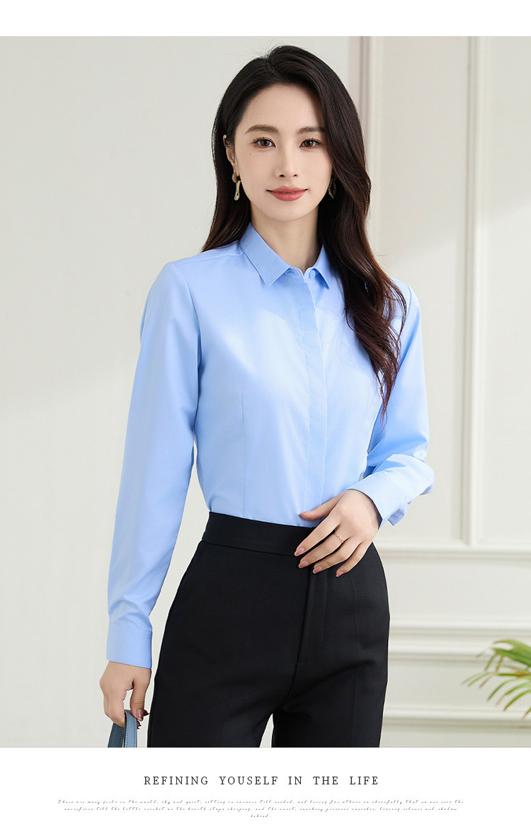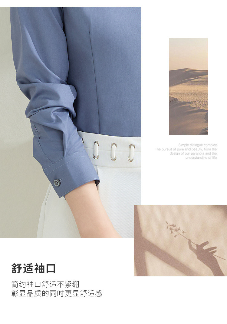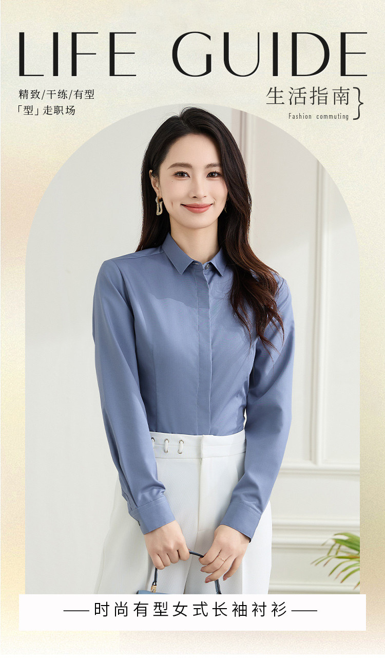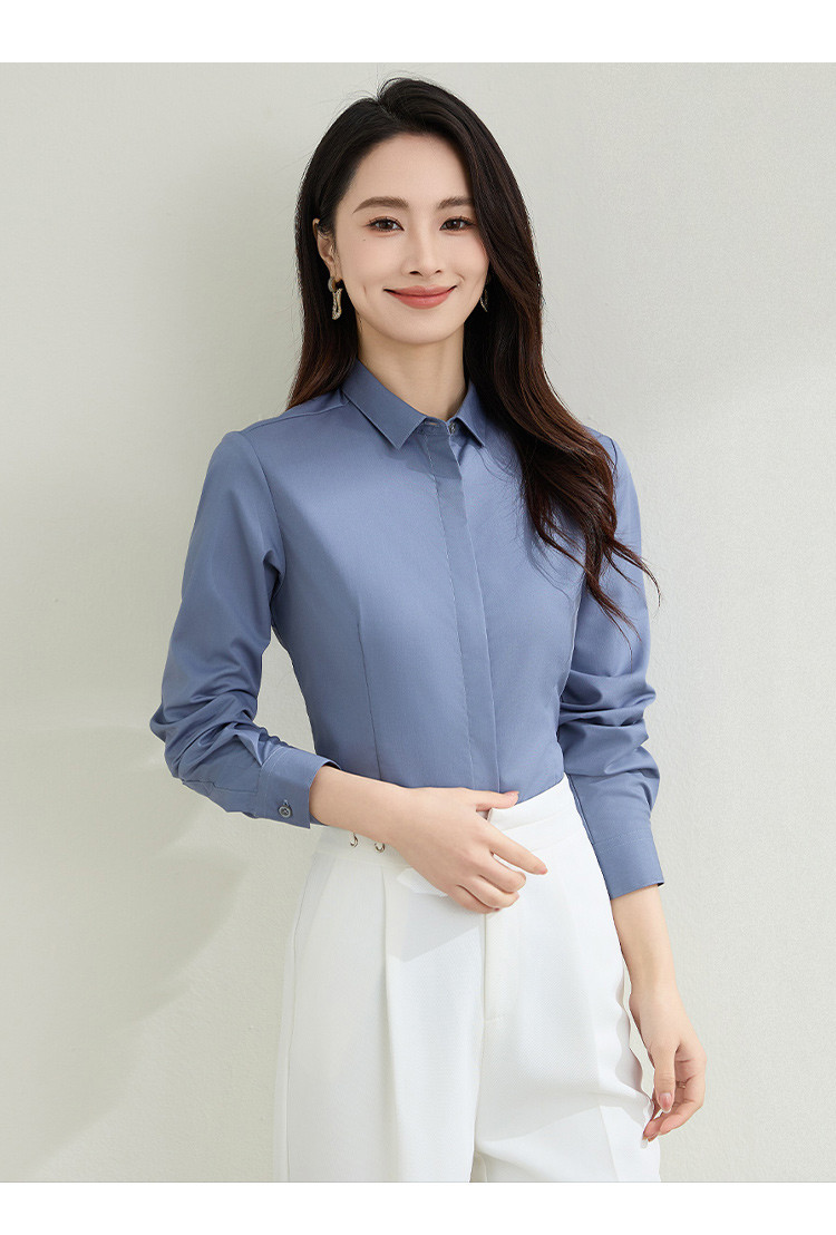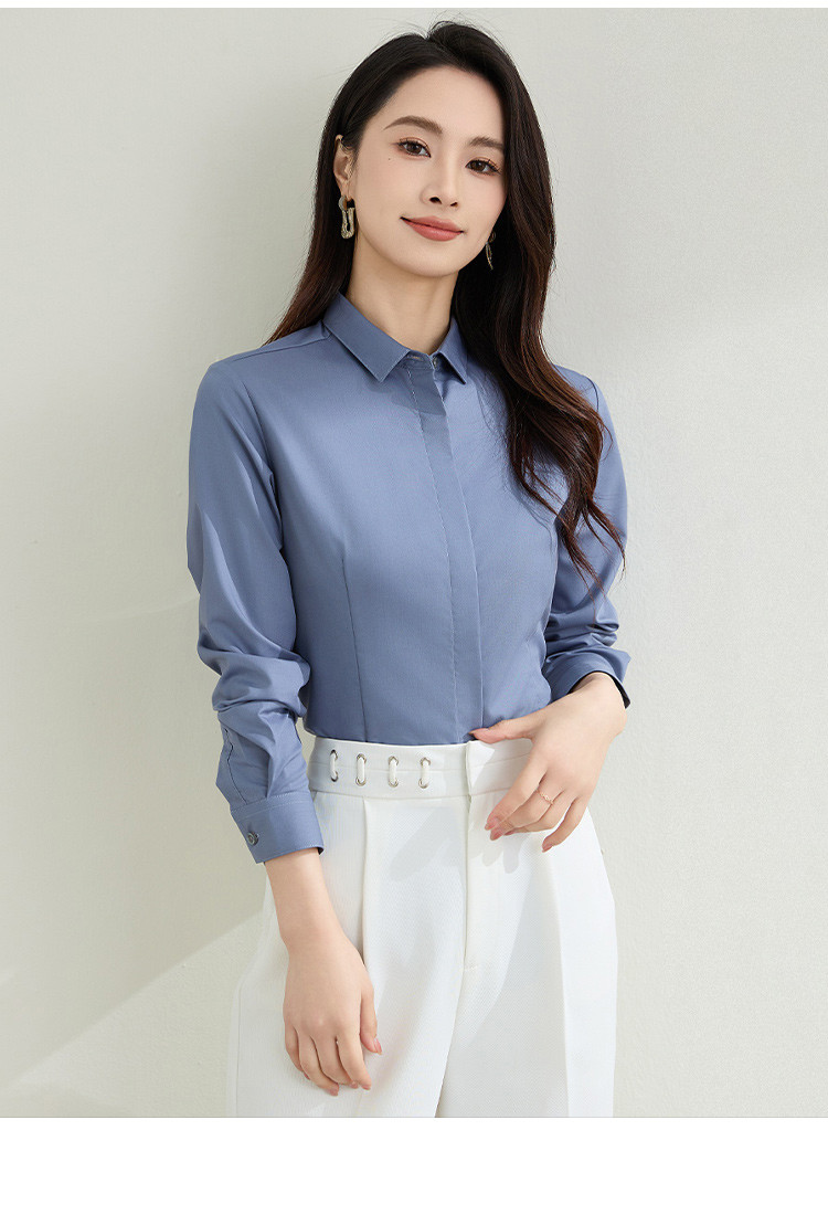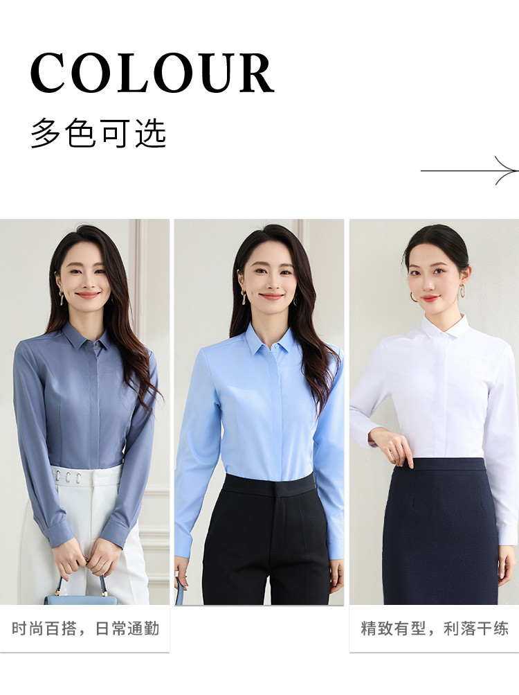【弹力易打理】罗蒙春秋纯色暗门襟长袖衬衫女士正装商务通勤职业工装上班衬衣女上衣