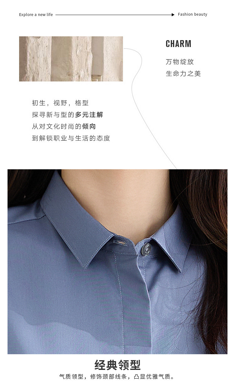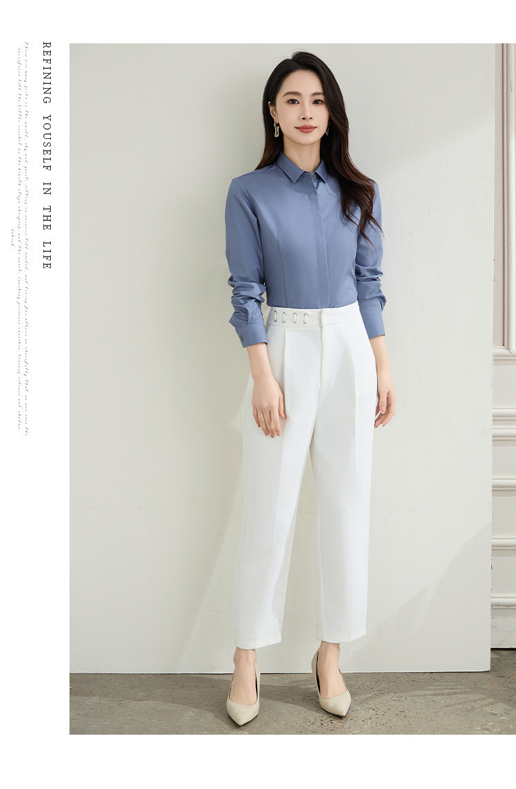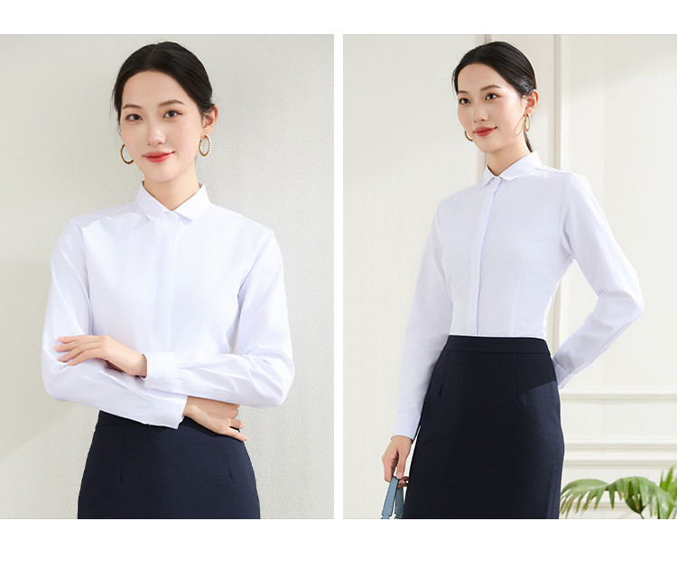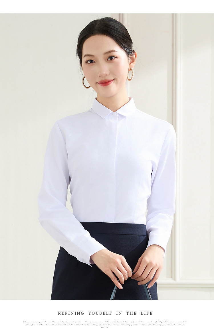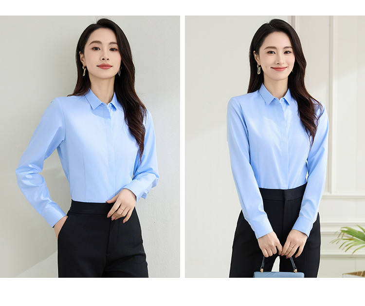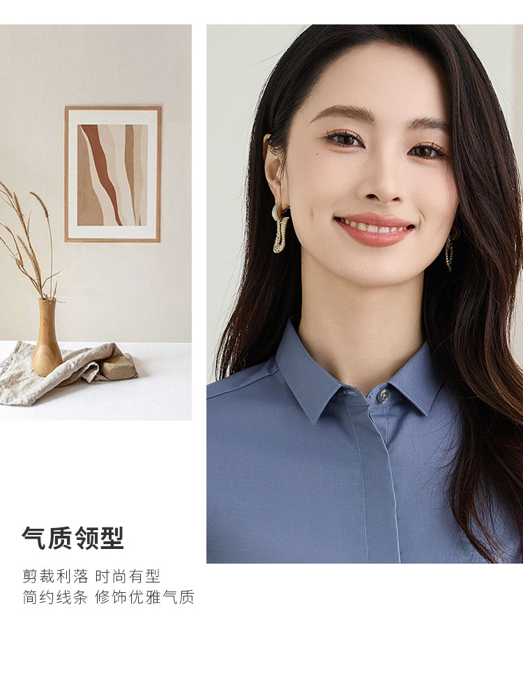 【弹力易打理】罗蒙春秋纯色暗门襟长袖衬衫女士正装商务通勤职业工装上班衬衣女上衣
