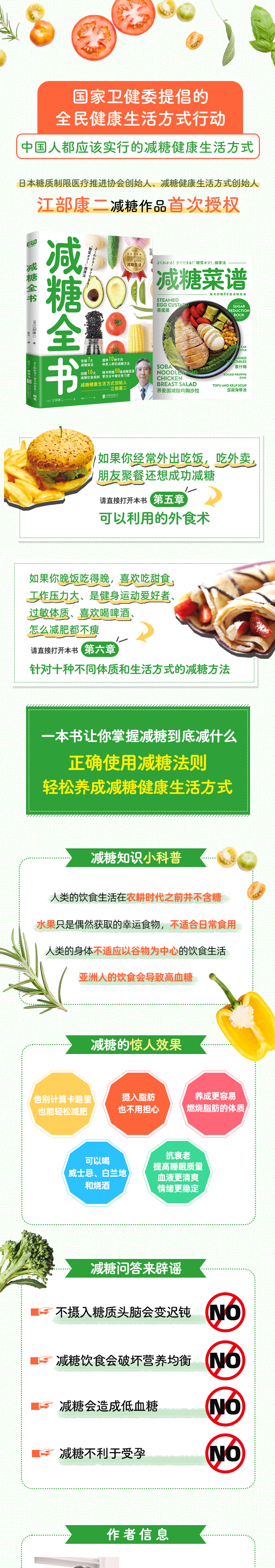 江部康二在日本出版了《一生不胖的“苗条吃法”》《让糖尿病好转的糖质控制饮食》等十多部畅销作品,广受读者和专业人士好评。