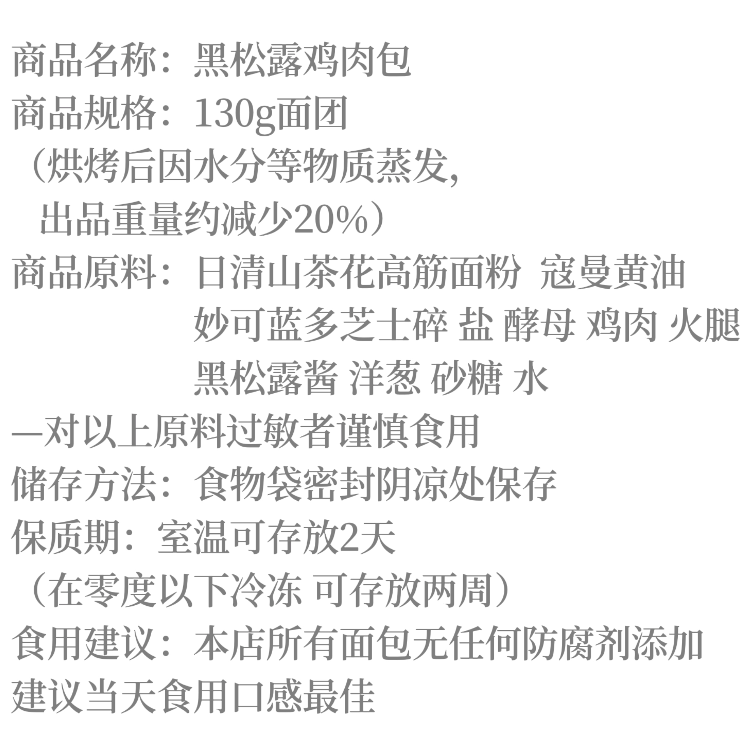 日清山茶花高筋面粉 砂糖 鸡蛋 盐 天然酵母 全脂牛奶 寇曼黄油 黑松露酱 鸡肉 妙可蓝多芝士碎