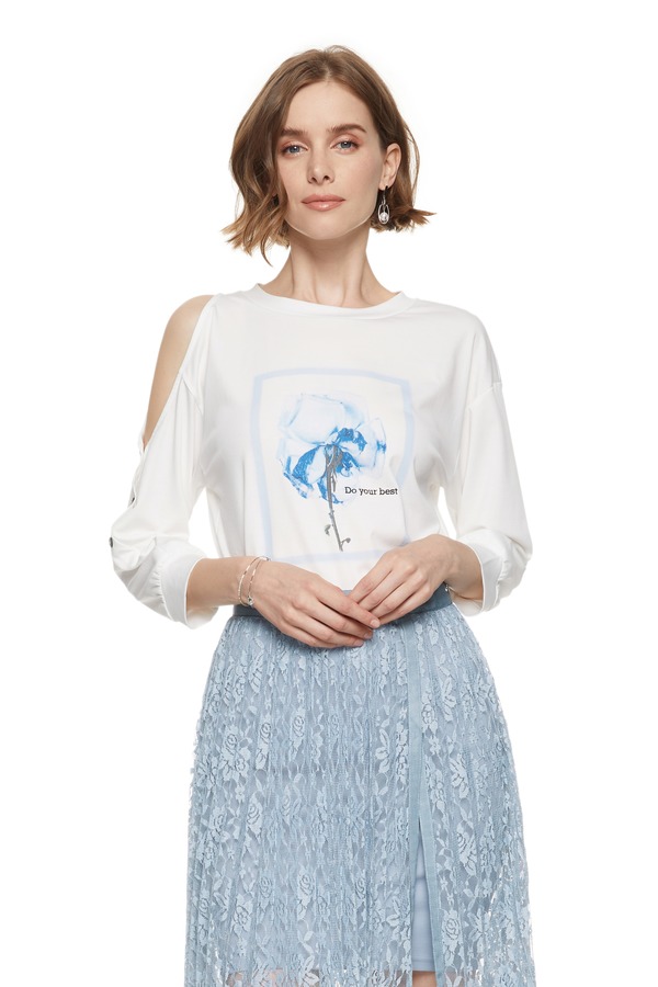 SUMMER & SAGE 不对称挖肩印花T恤 7522