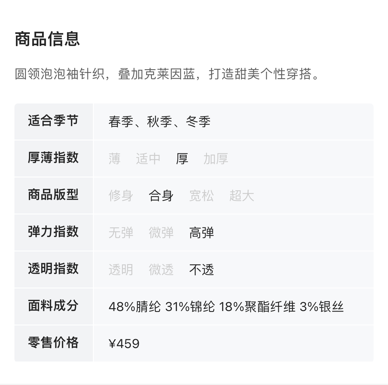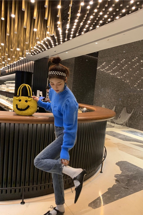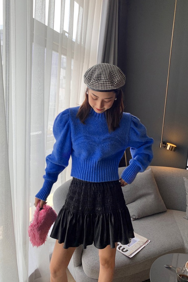 Stay2Weeks 克莱因蓝泡泡袖针织上衣 15106