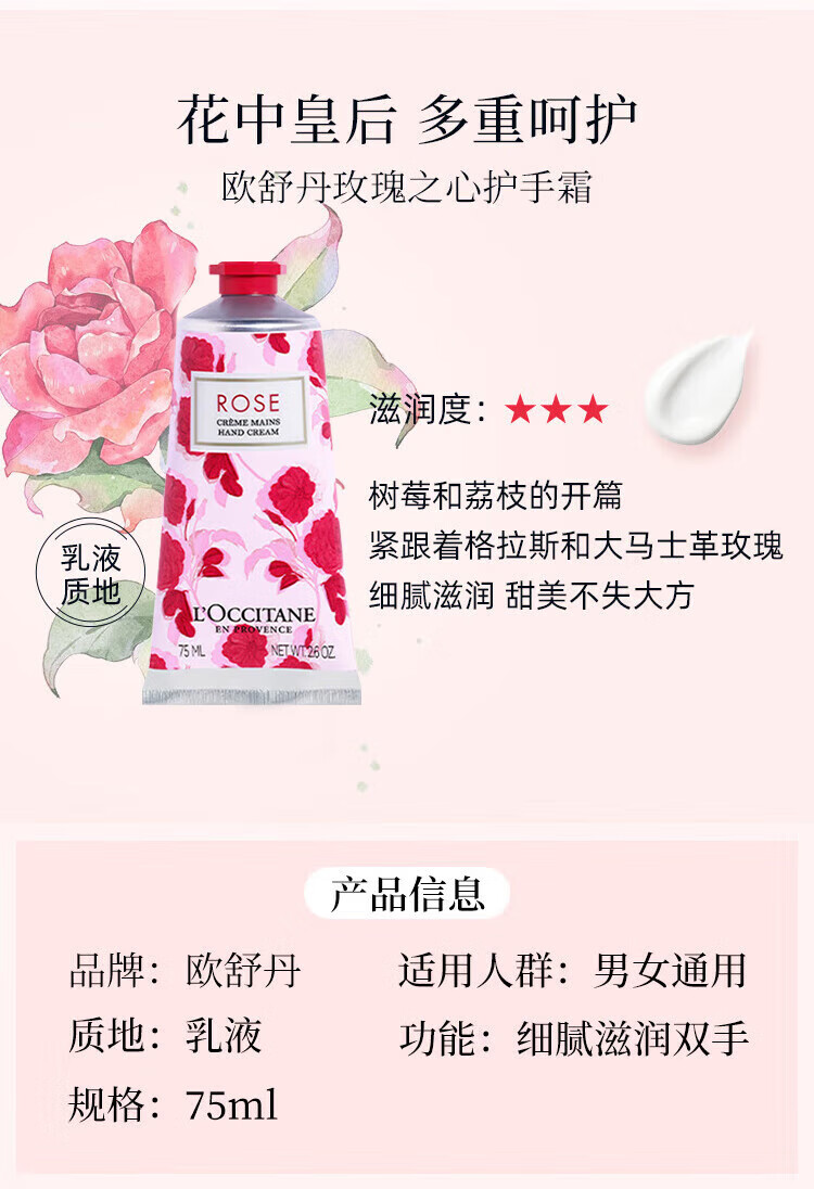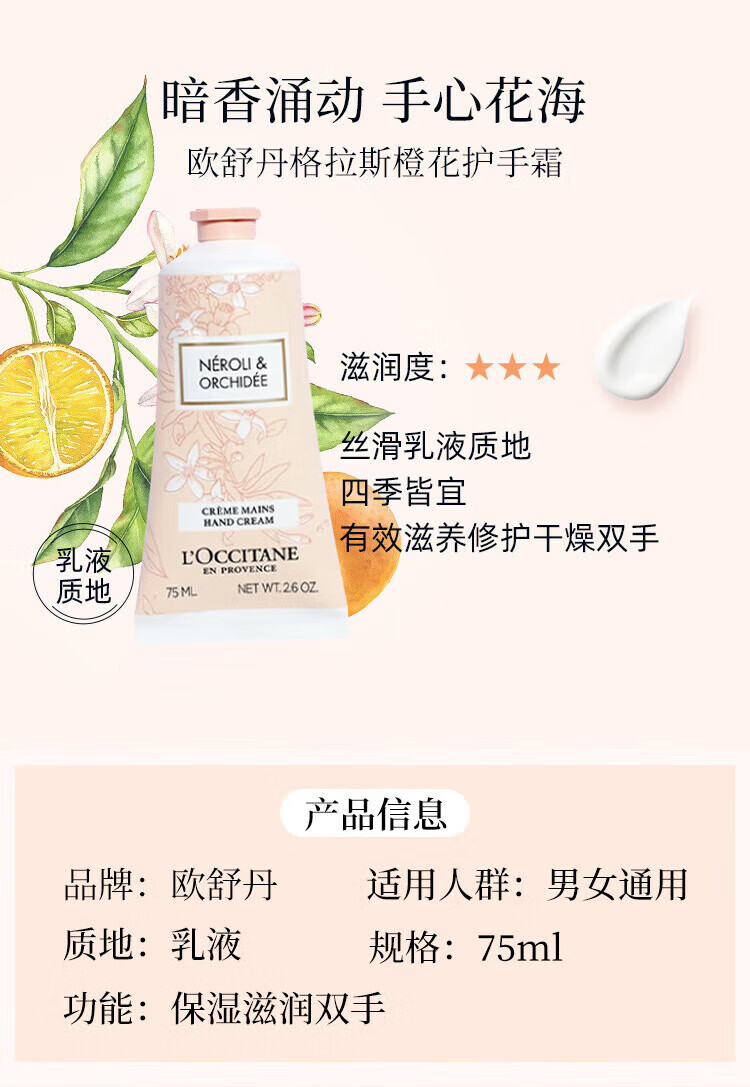 【保税仓】L'OCCITANE/欧舒丹 75ML护手霜三件套 橙花75ML+樱花75ML+玫瑰75ML(有效期至25年7月)