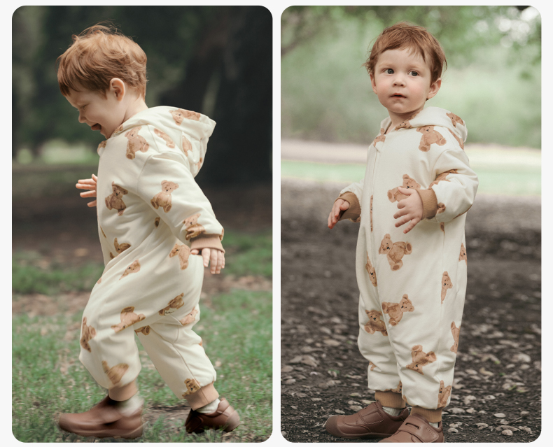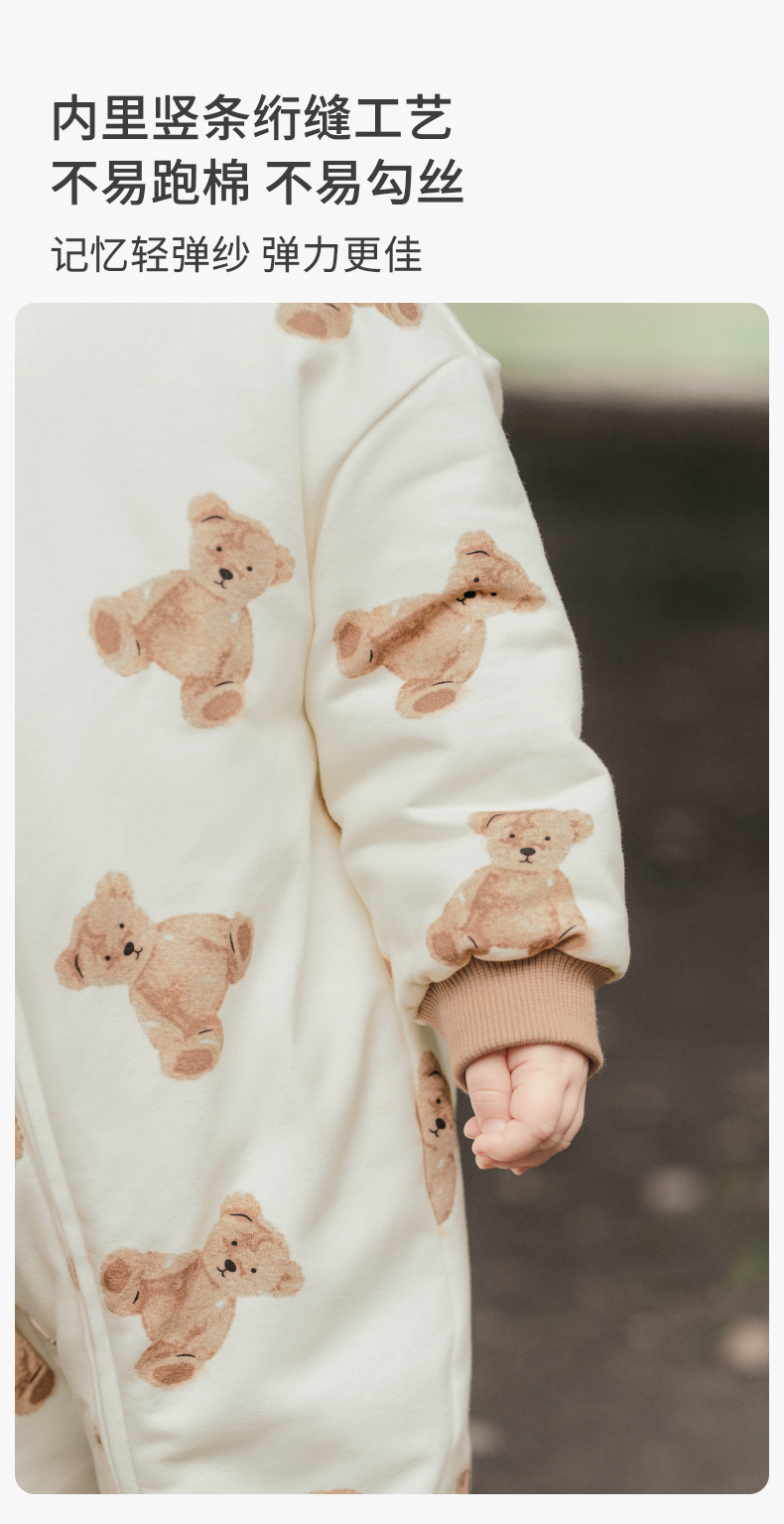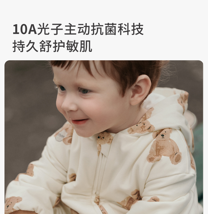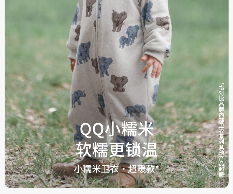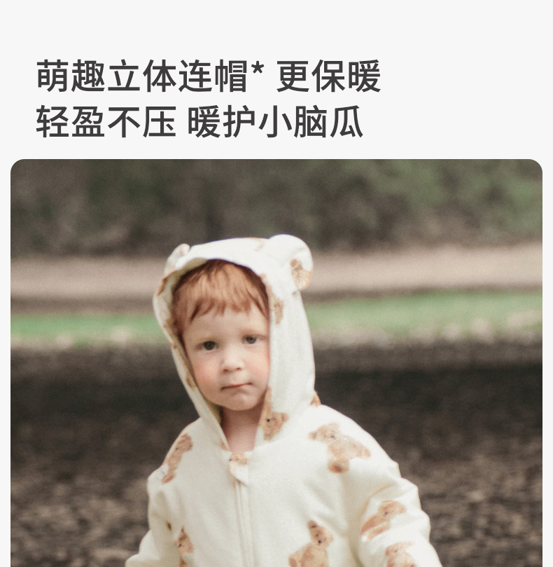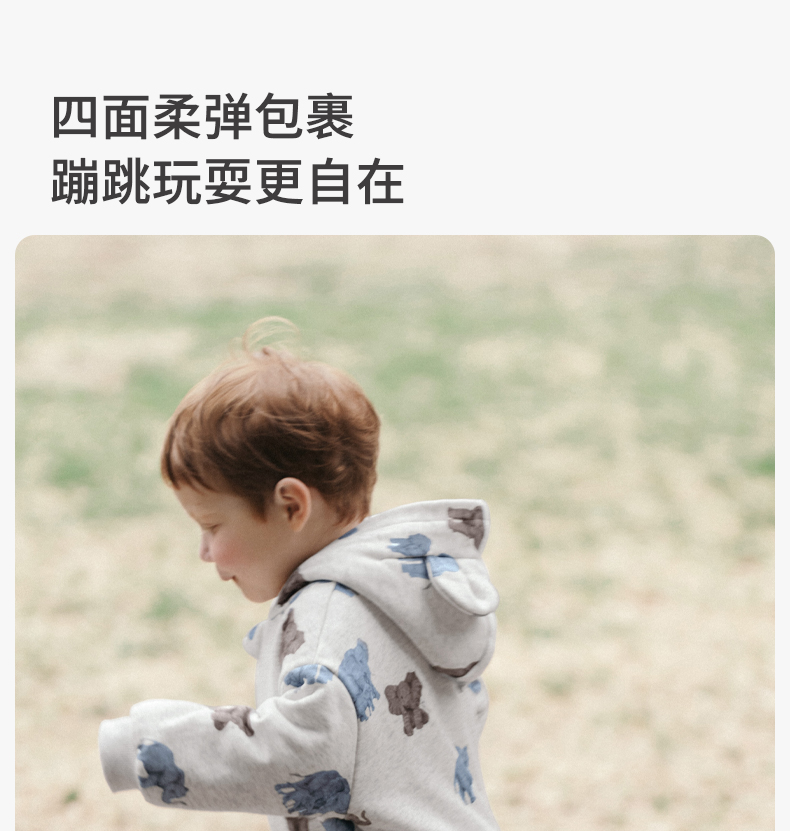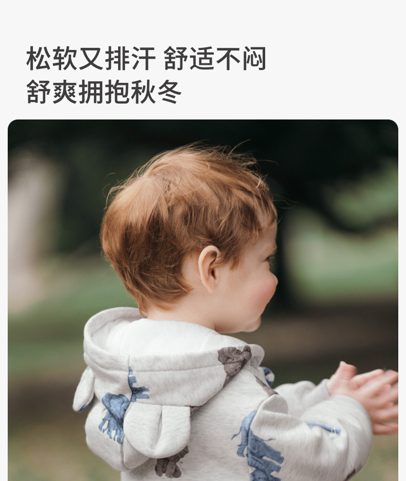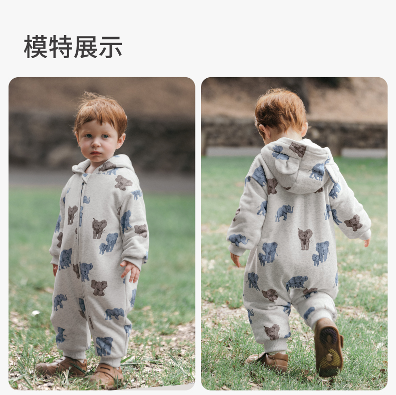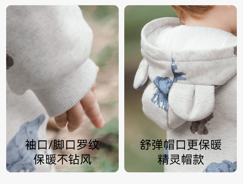 嫚熙婴儿连体衣连帽卫衣宝宝保暖衣服夹棉早秋冬外出服新款爬服-H