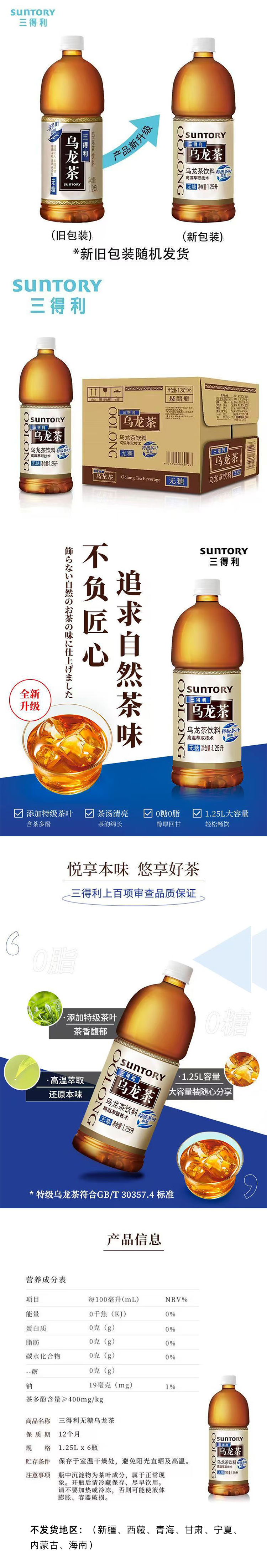 三得利无糖乌龙茶 1.25L*6瓶