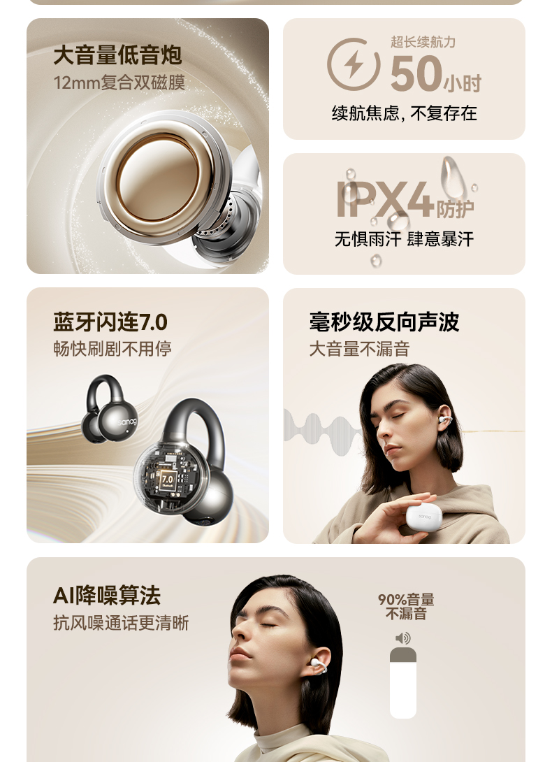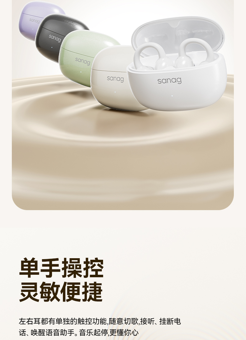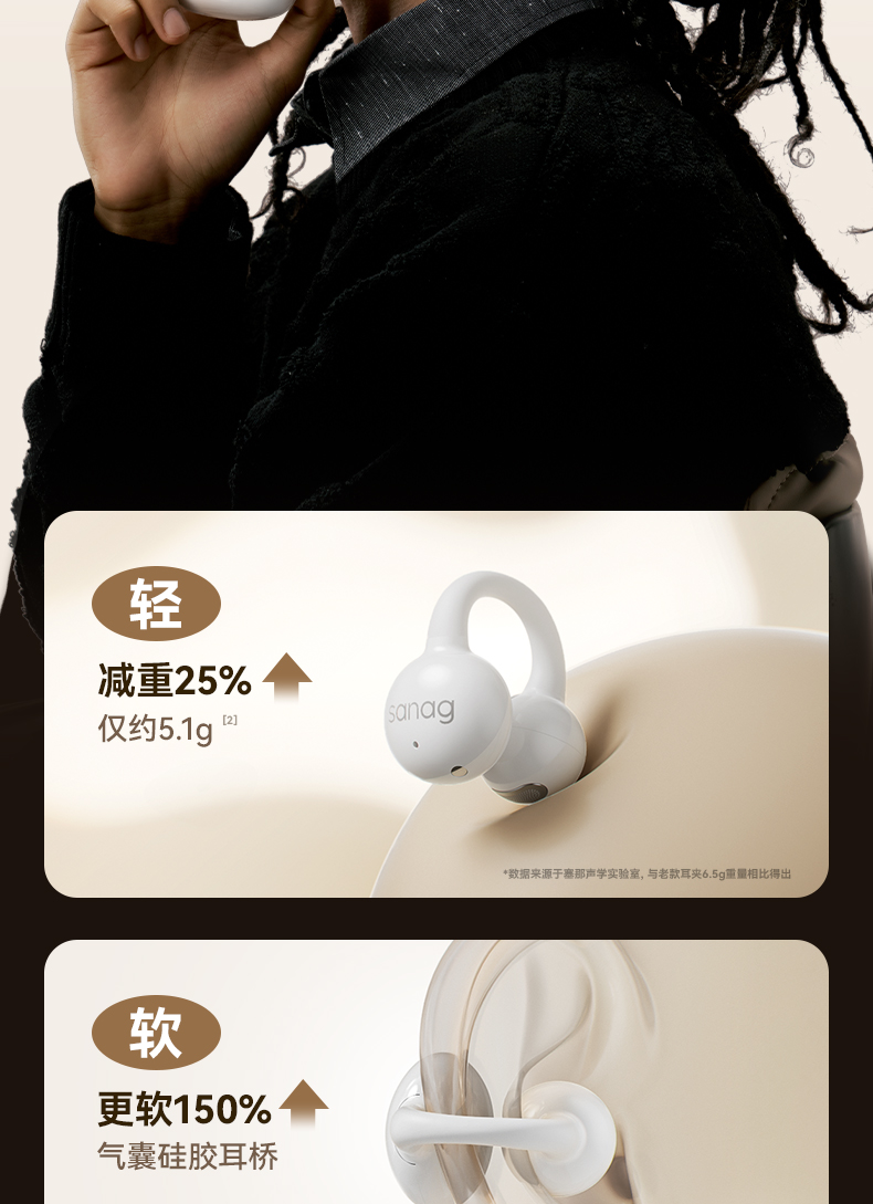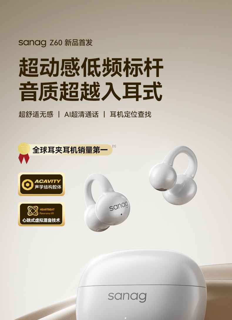 SANAG塞那Z60蓝牙耳机骨传导概念【重磅新品】耳夹式开放式真无线不入耳运动通话降噪适用华为苹果小米 【动感低频】