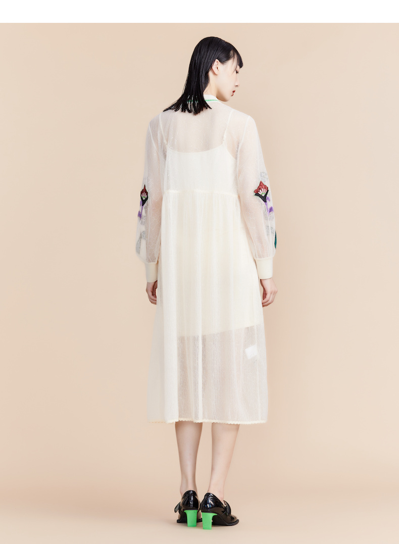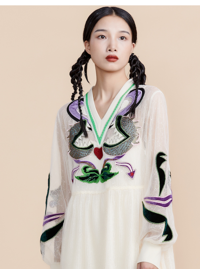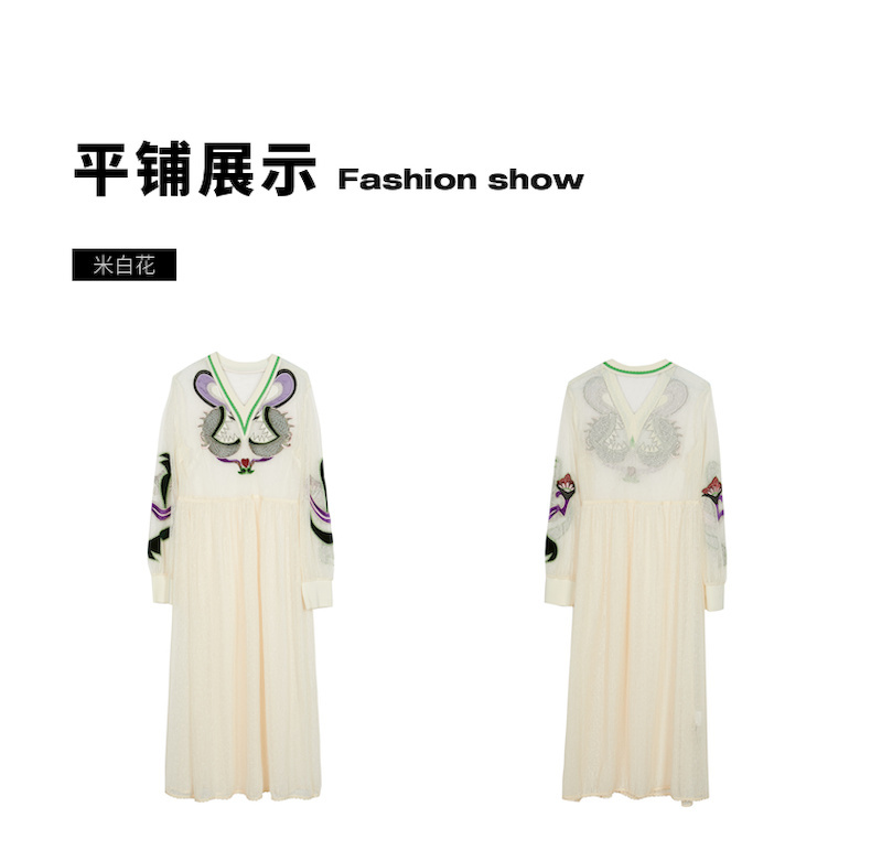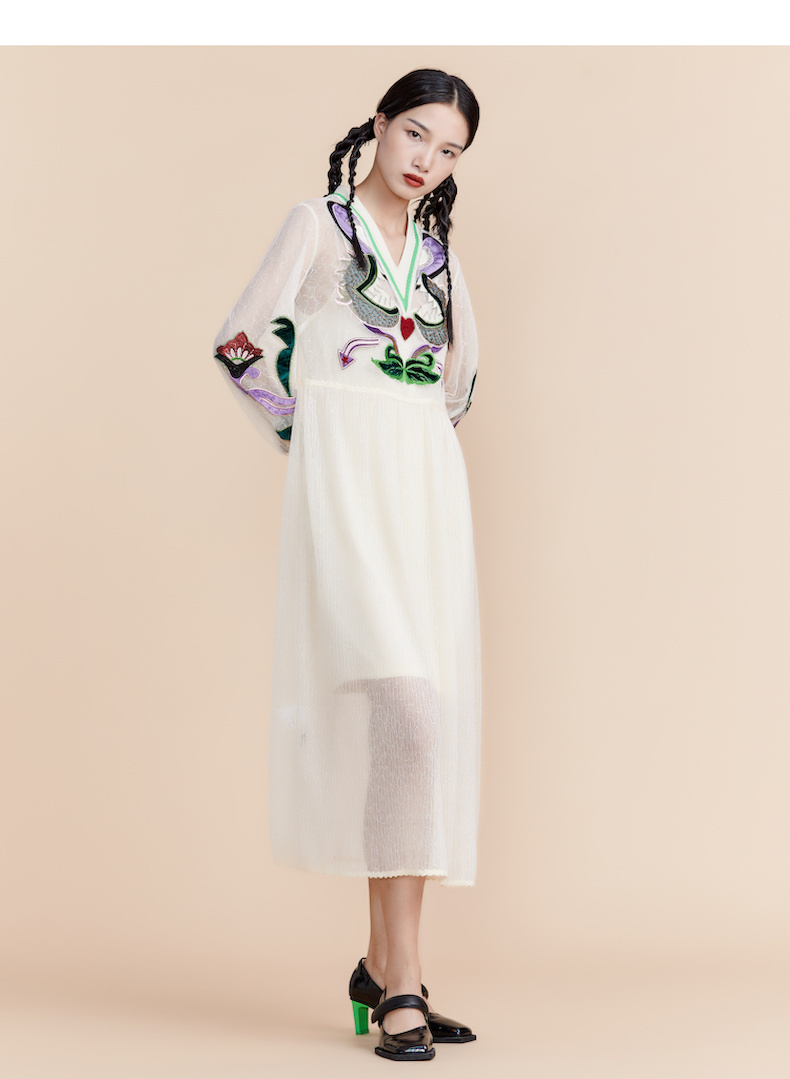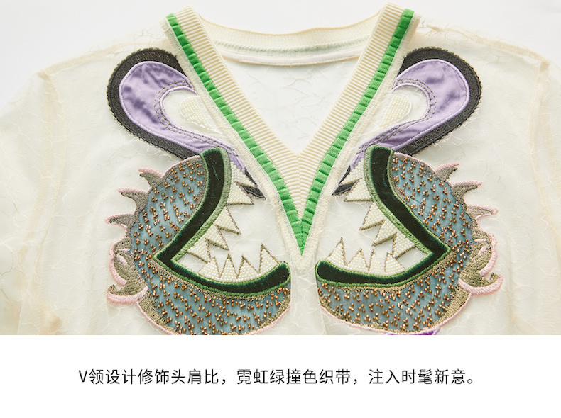 谜底2022春新款高订款晚礼裙复古V领蕾丝连衣裙221GL0095