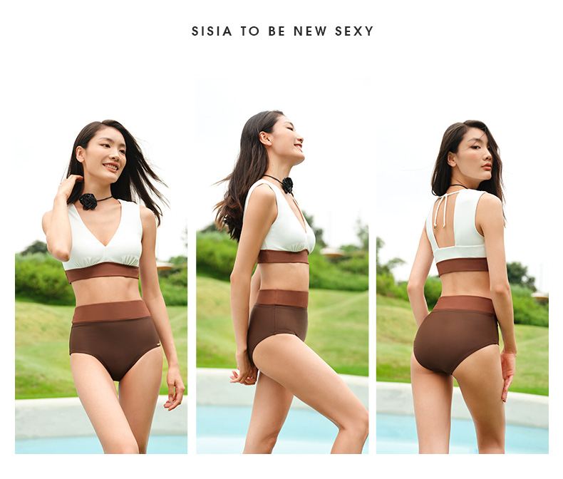 sisia分体泳衣泳裤女士海边度假三件套高腰显瘦遮肚新款温泉套装SWB24-01A