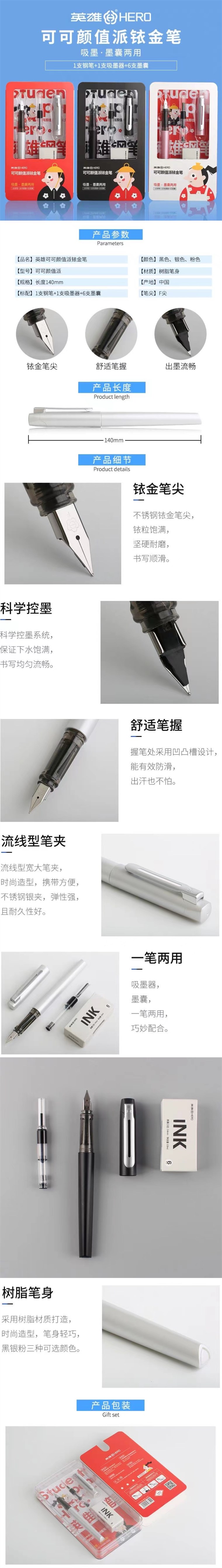 英雄钢笔396套装 1套 学生练字小学书写三四年级可替换墨囊墨水两用铱金笔HERO