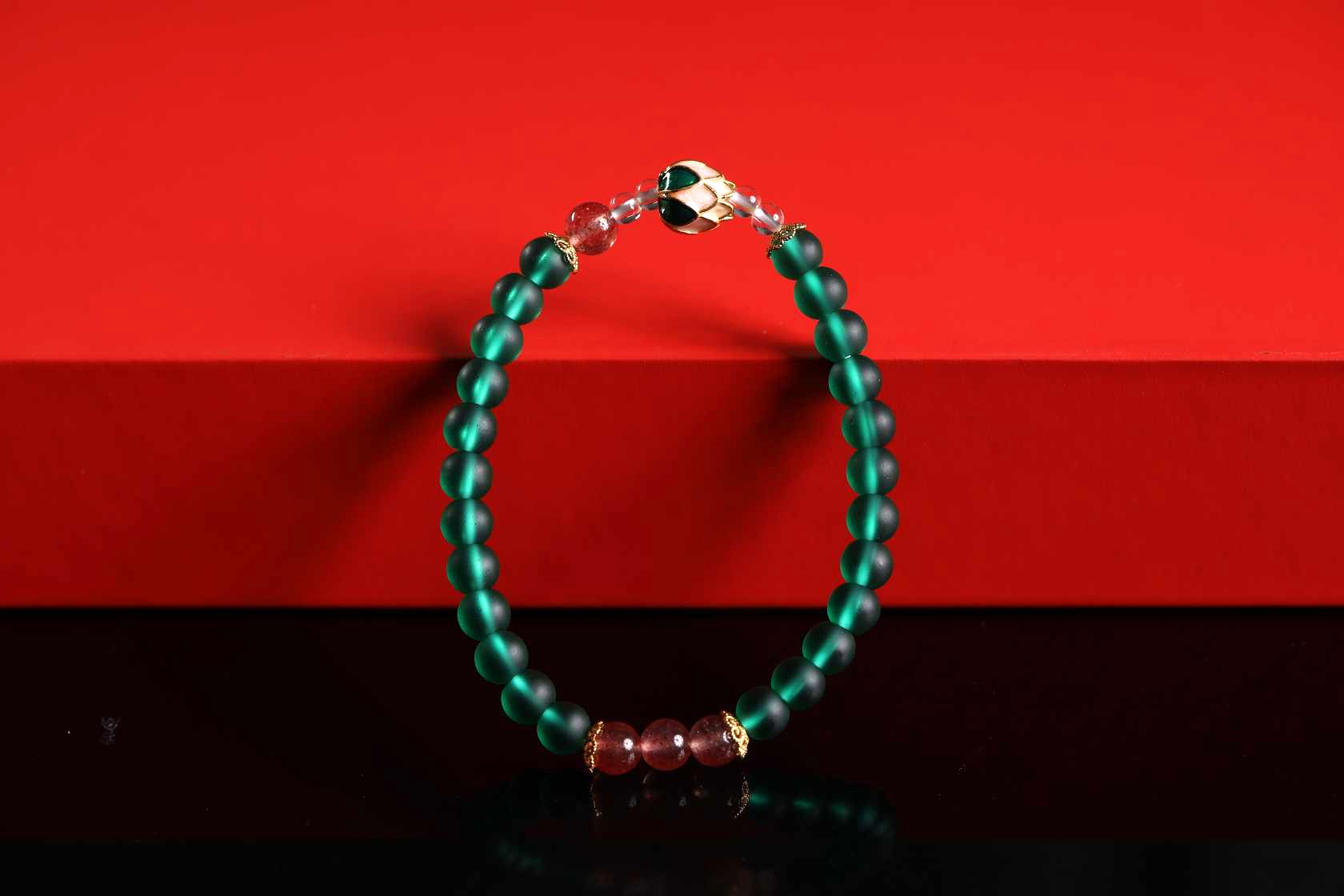 | 配件 | 沙金小花托,红草莓晶,白水晶,沙金绿底粉莲花 |