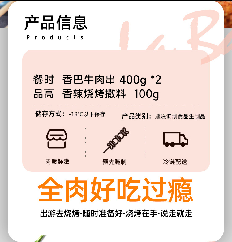 餐时香巴牛肉串 400g*2 + 品高香辣烧烤撒料100g