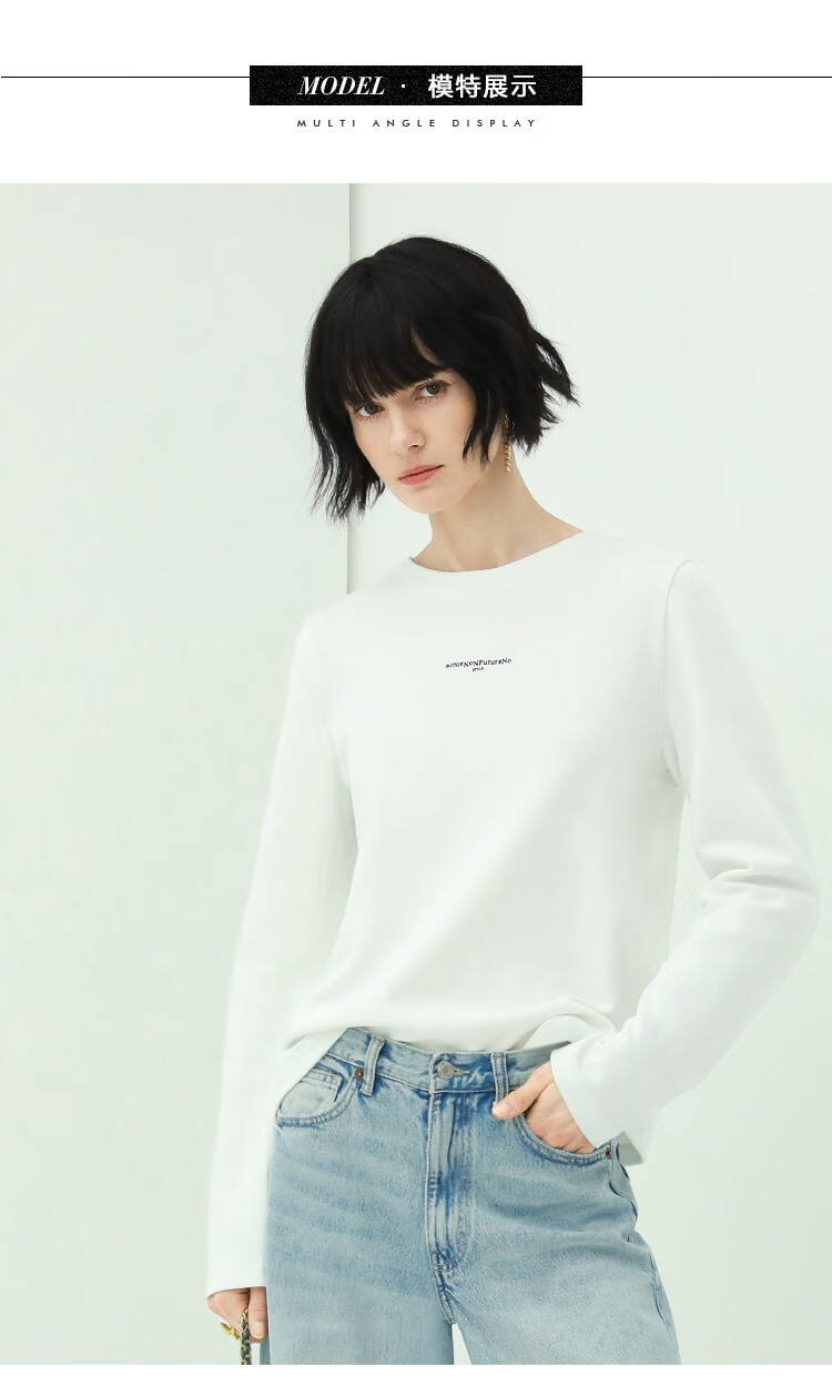 COCOBELLA时尚简约字母印花长袖T恤秋气质休闲舒适上衣TS639