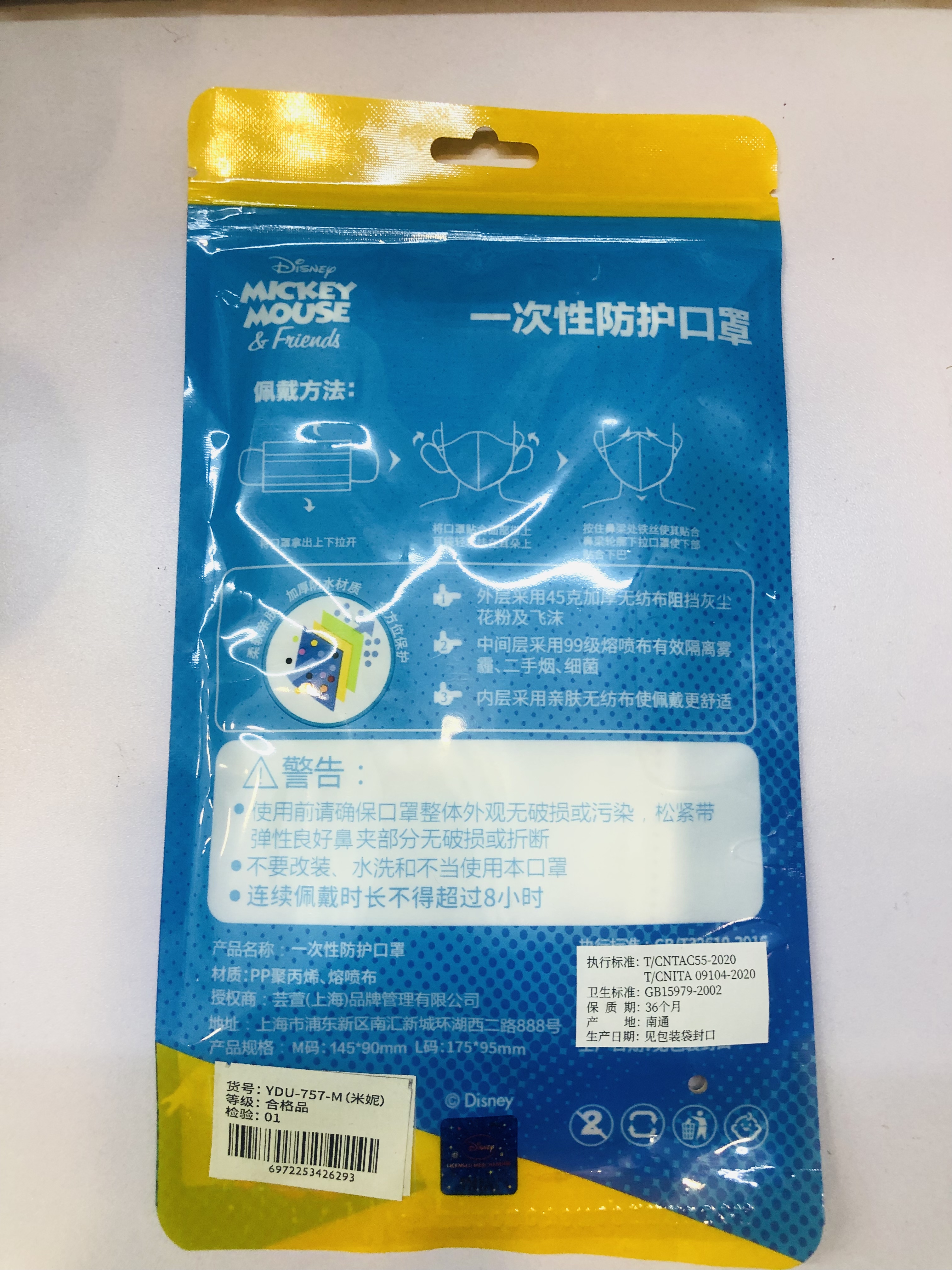 迪士尼一次性防护儿童口罩5片/包 两包装 韩国