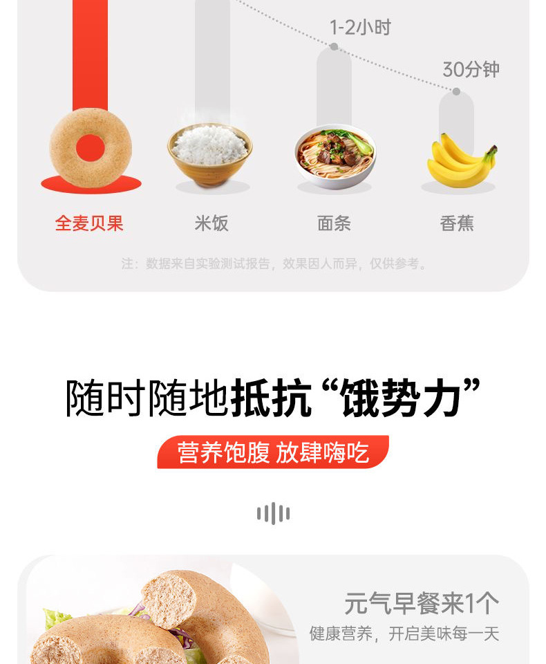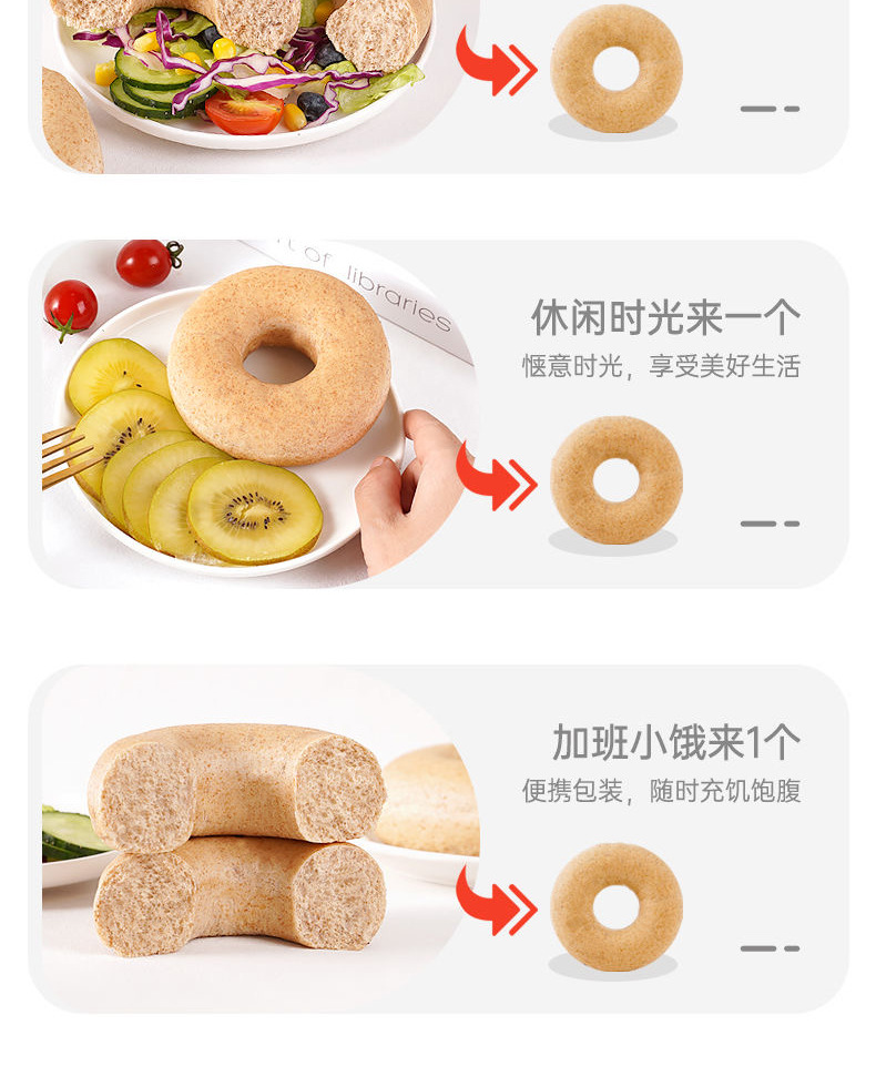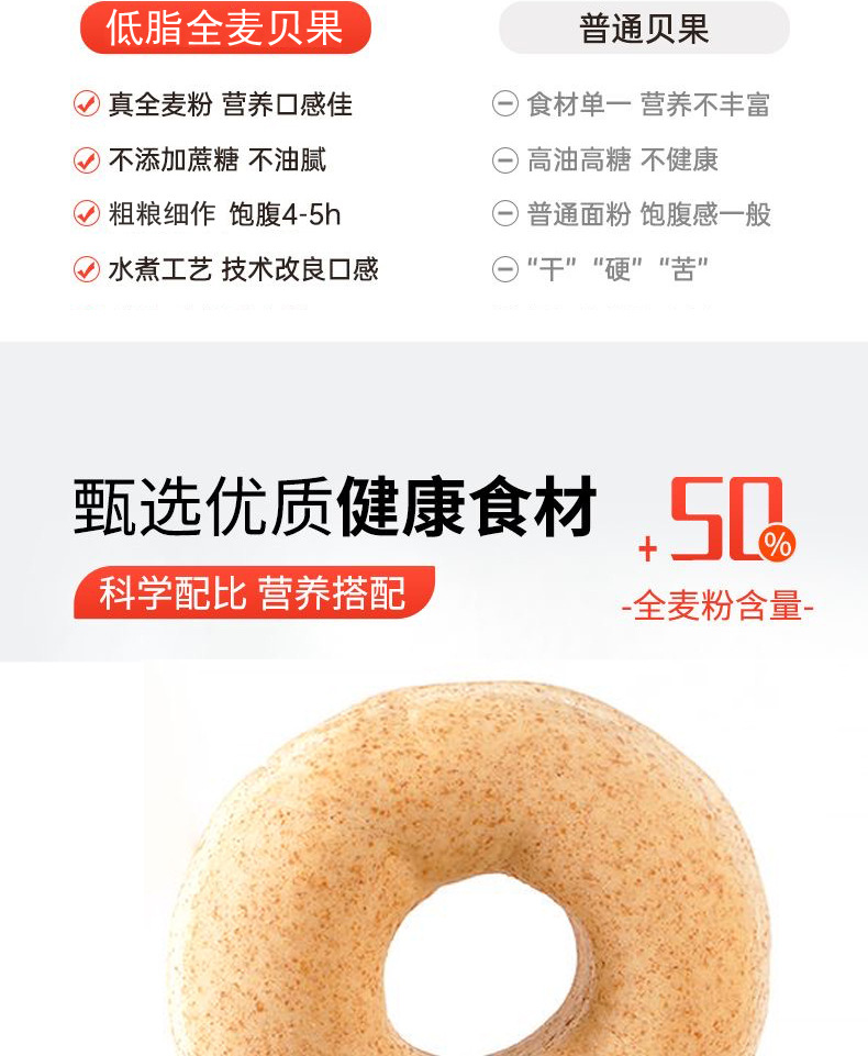 「全麦贝果!好吃无负担」全麦低脂面包 粗粮饱腹早代餐健身食品零食
