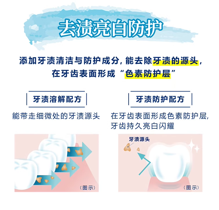 帮助清洁口腔,试验表明,帮助抑制牙渍附着在牙齿表面~