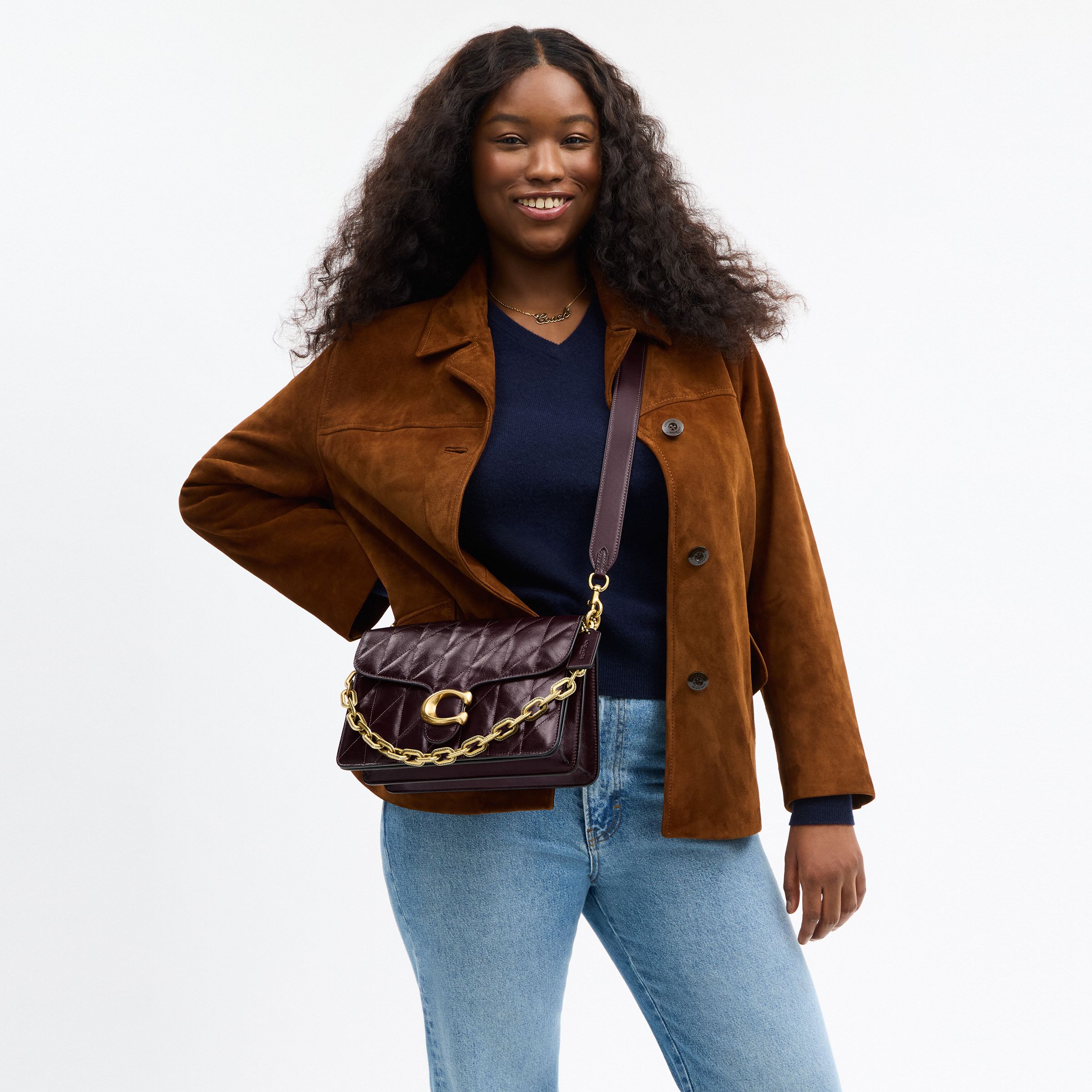 这款工整有型的Tabby链带单肩包以现代方式重塑1970年代的Coach设计,采用经过转鼓处理的柔软皮革制作,呈现奢华质感和亮泽表面。紧凑型绗缝细节款式提供充足收纳性,配备了内置的多功能口袋和一个方便的外置拉链袋。配有经典标志五金件,尽显标志性魅力。百搭设计附有三条可拆卸肩带,让其既可手提,也可通过优雅链条肩带实现肩背,还可使用皮革长肩带来斜挎。