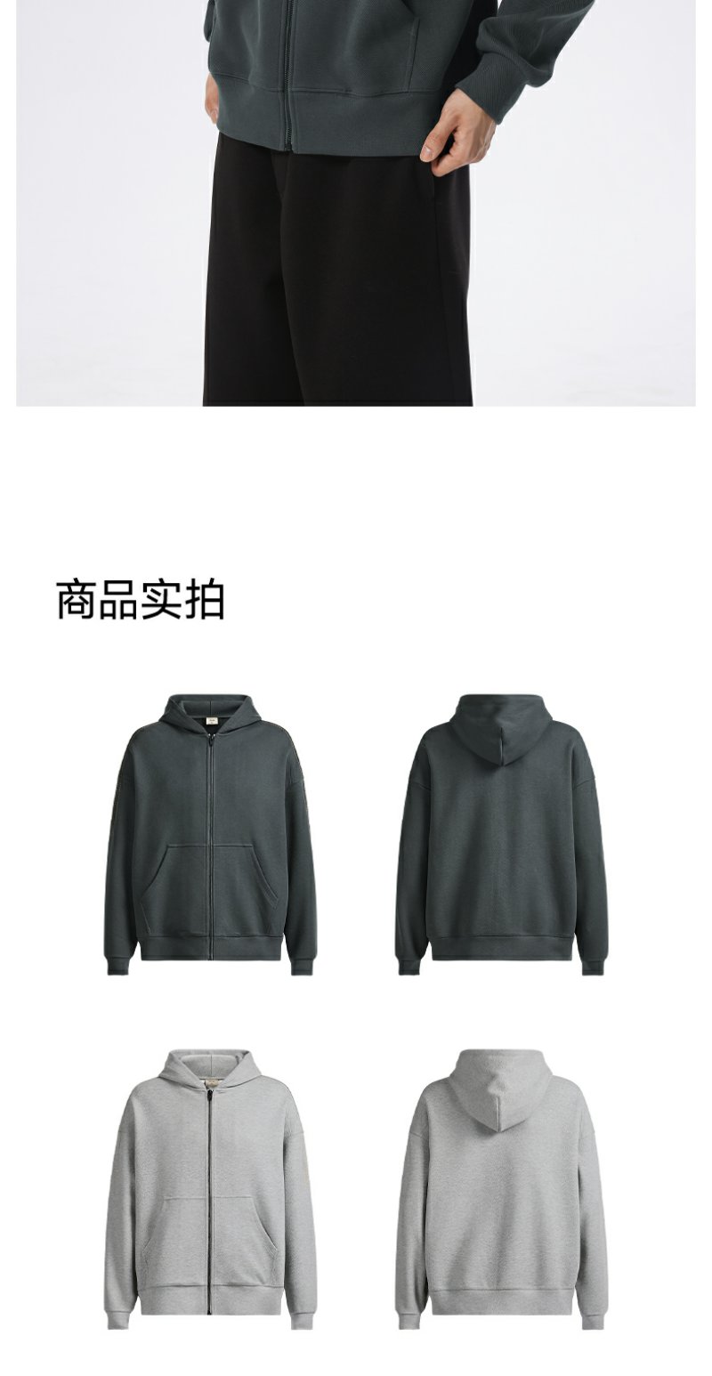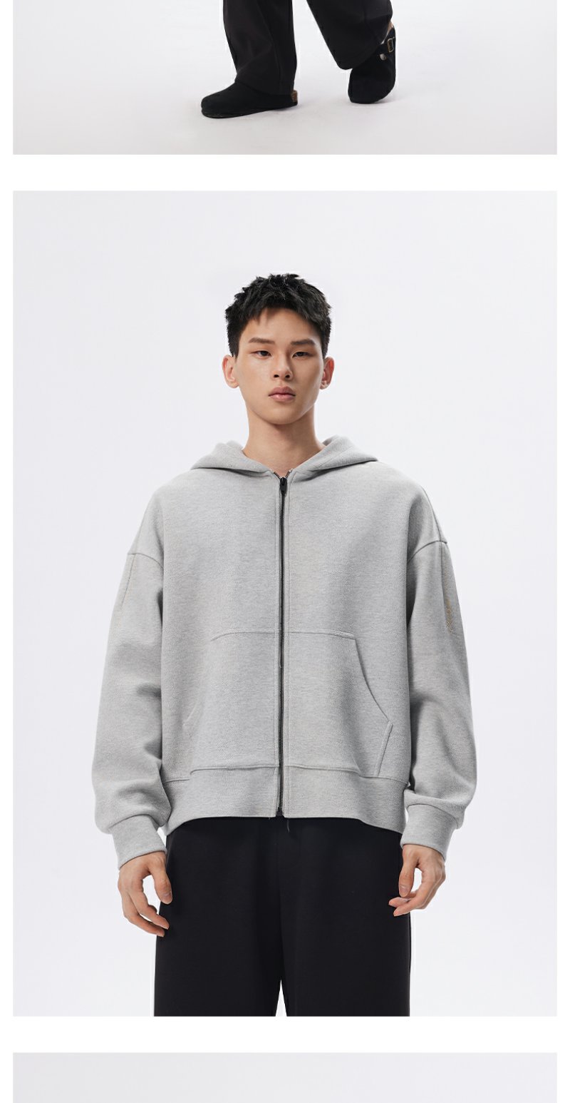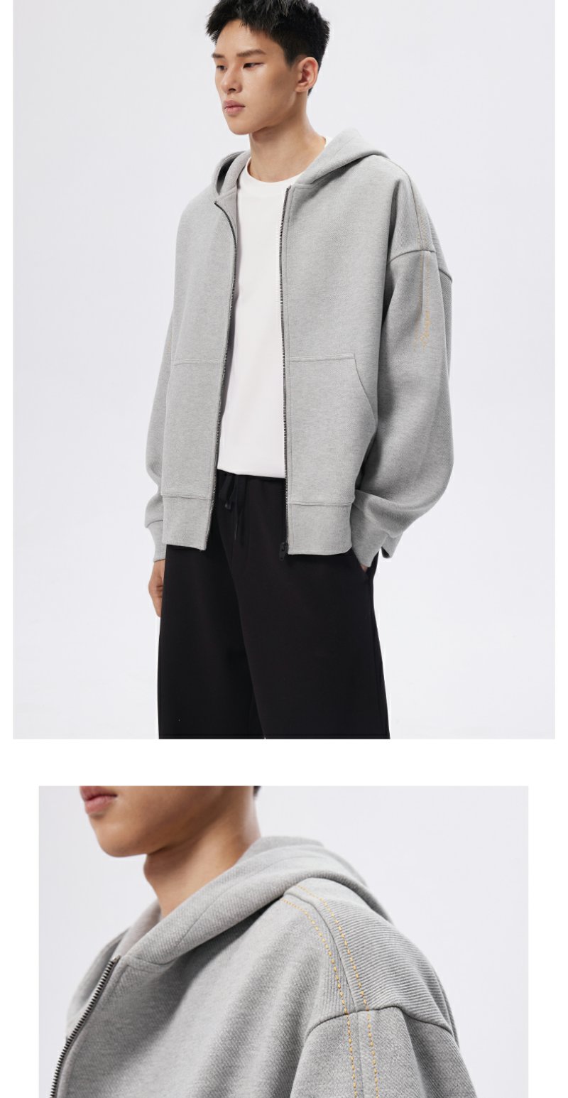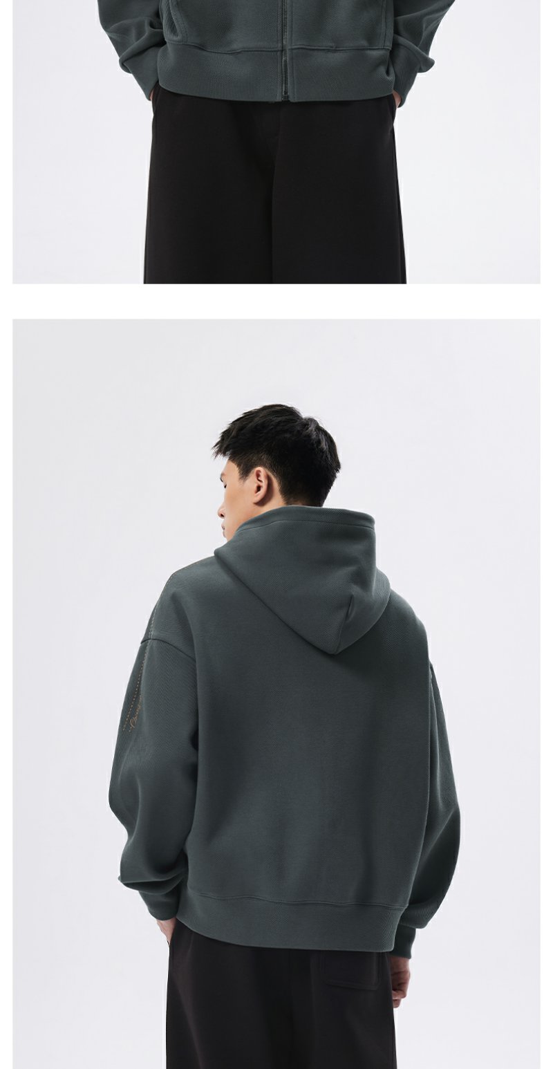 CHINISM赤尘 花灰色连帽开衫卫衣男春季新款宽松廓形男士拉链外套