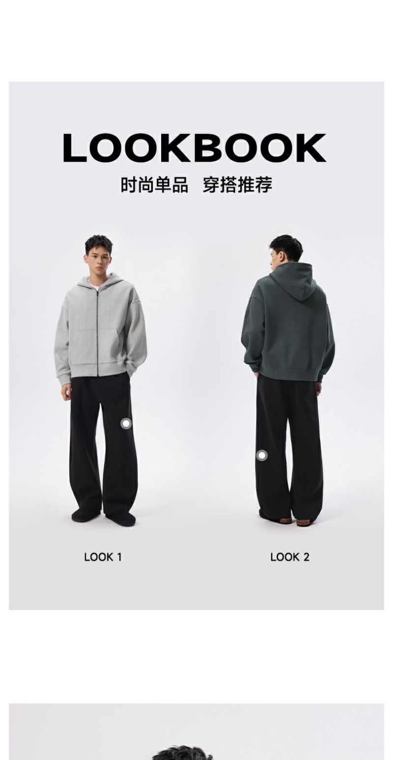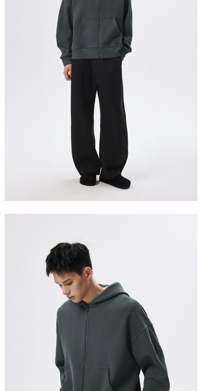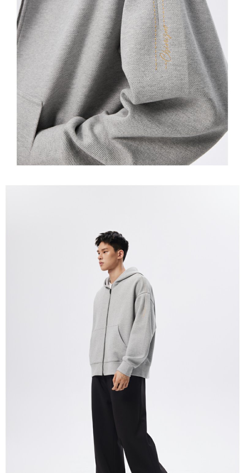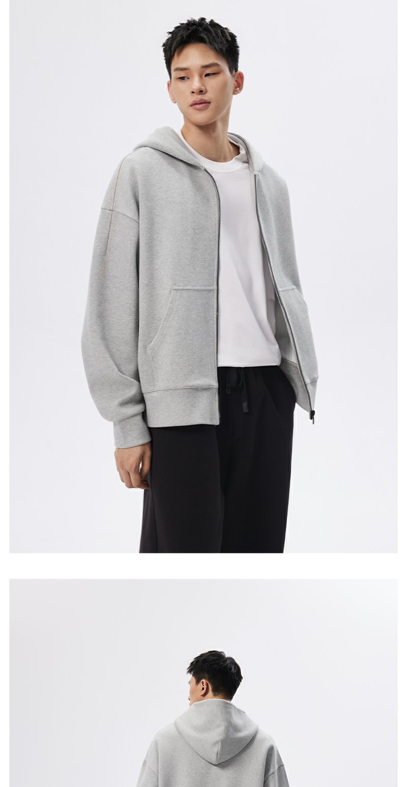 CHINISM赤尘 花灰色连帽开衫卫衣男春季新款宽松廓形男士拉链外套